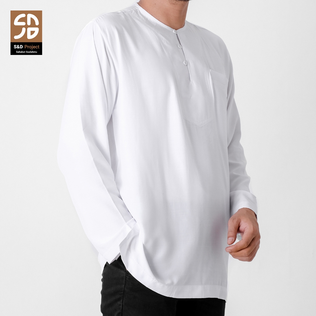 S&D PROJECT Baju Koko Muslim Pangsi Katun Rayon Putih Jumbo M-4XL Untuk Pria Dewasa Lengan Panjang
