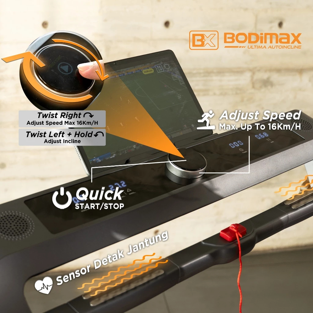 Clearance Sale Bodimax Treadmill Ultima Auto Incline 15 Level 2.0 HP 16KM/Jam