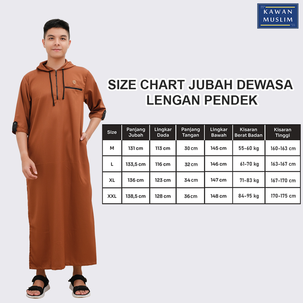 Kawan Muslim - Jubah Hoodie / Jubah Pria / Gamis Pria Dewasa Modern Lengan Pendek Coklat Premium