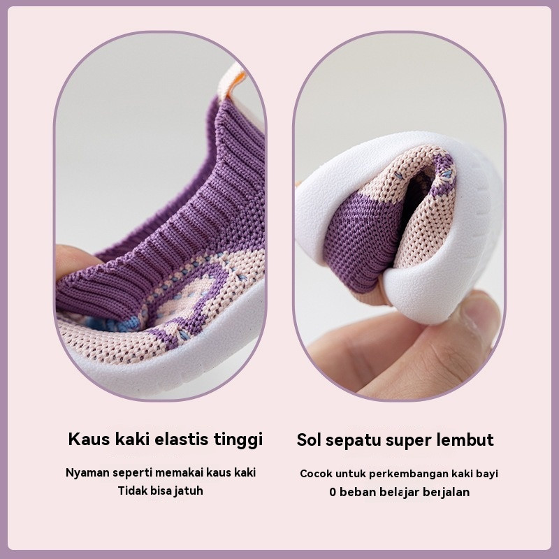 Sepatu Bayi Belajar Jalan 9 - 24 Bulan - Bahan Katun Mesh Nyaman & Sol TPR Lembut / Anti Licin / Desain Slip-On / Cocok