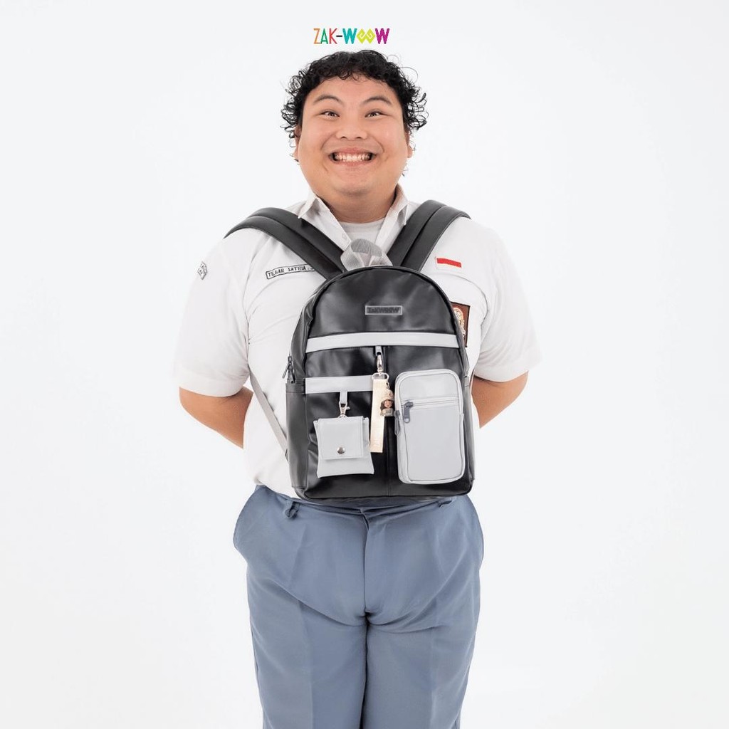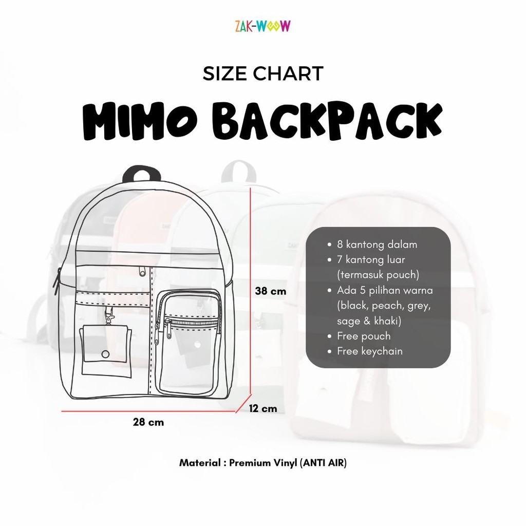 Zakwoowstyle Mimo Backpack Anti Kotor Banyak Kantong FREE KEYCHAIN & POUCH Uni (BUNDLING RAIN COVER WARNA TULIS NOTES