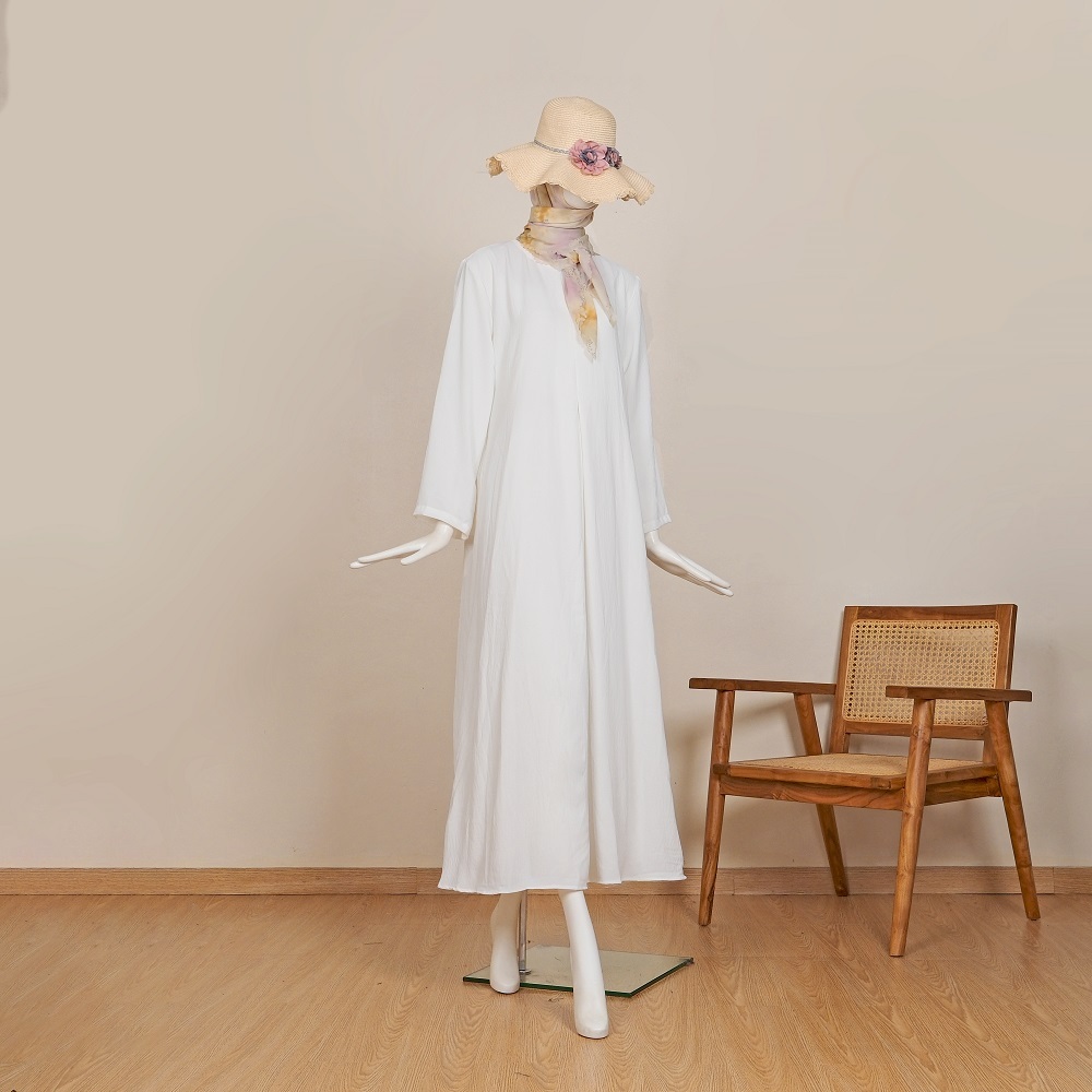 Le Khari Tanisha I Basic Abaya Gamis Polos Bahan Airflow Size S - XL Gamis Putih Gamis Homedress Busui Size S - XL