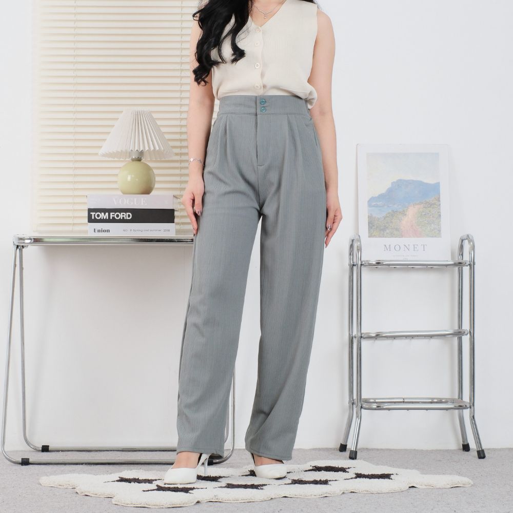 Celana Kulot Highwaist Daily Wanita Jennie Pants Knit Premium Loose Cullote Pants Wanita Kekinian