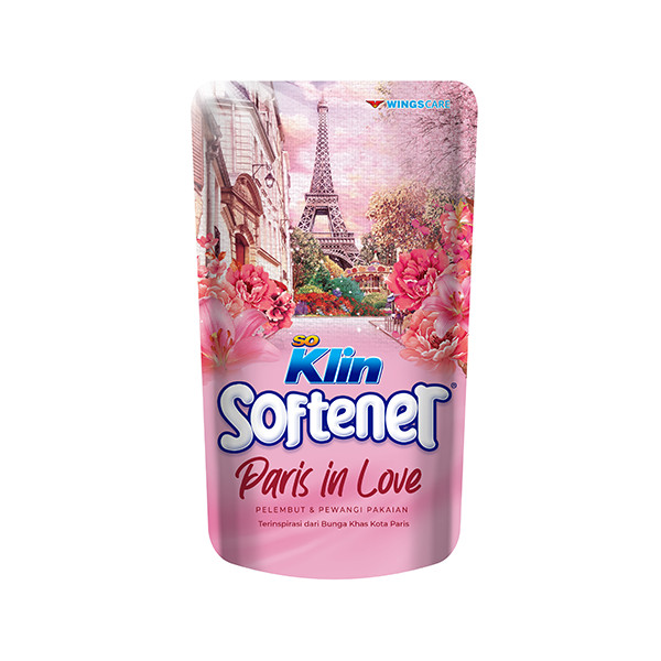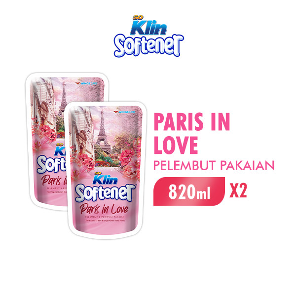 Soklin Softener Pelembut Dan Pewangi Pakaian Merah Love In Paris Pouch 820 ml x2