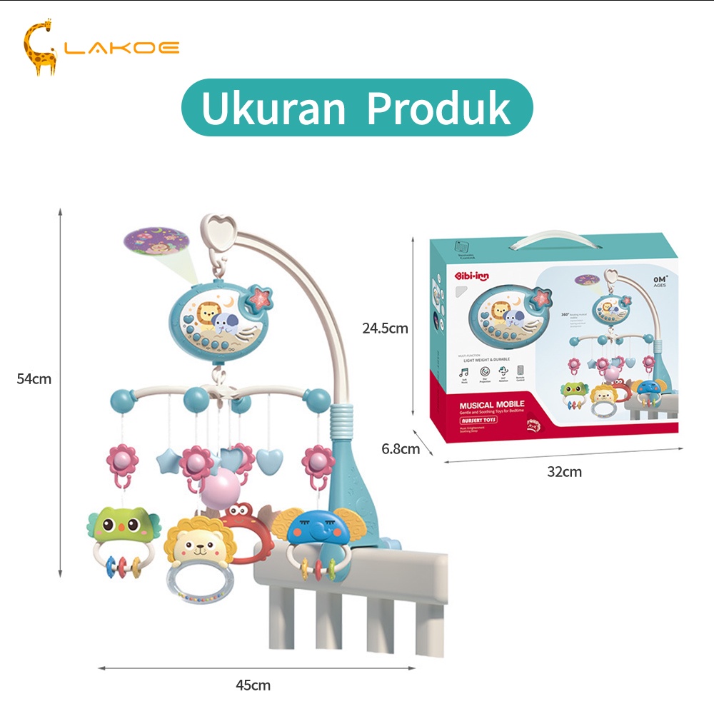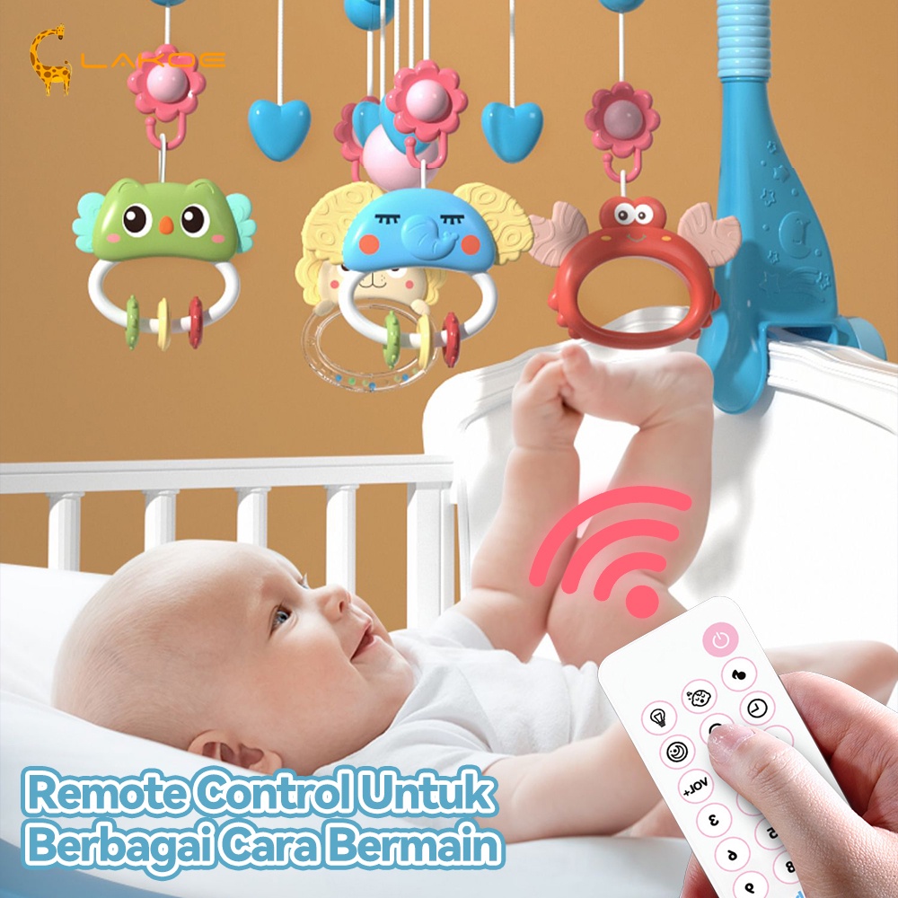 LAKOEOFFICIALMALL Remote Control Bed Bells Mainan Rattle Musik Bayi Crib Hanging Toys