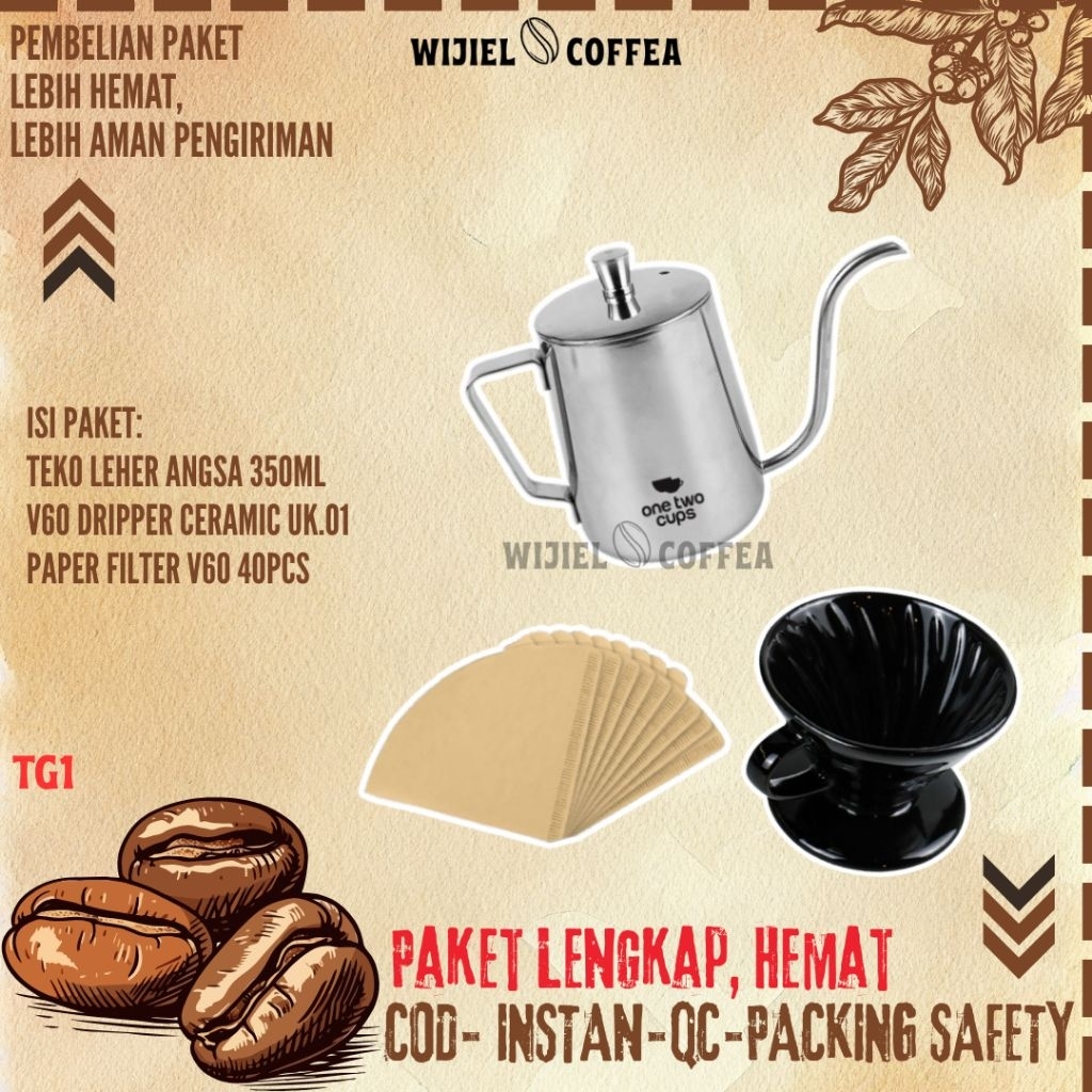 Paket Alat Kopi Lengkap tanpa Grinder - Set V60 DRIPPER Mokapot - Teko Leher Angsa - Vietnam Drip - French Press TERMURA