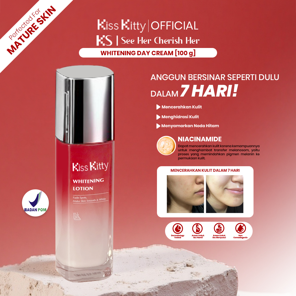 Kisskitty Day Cream Pelembab Pagi Pencerah Wajah Glowing Anti Noda Hitam Cocok untuk Kulit Kusam dan Sensitif