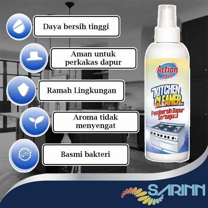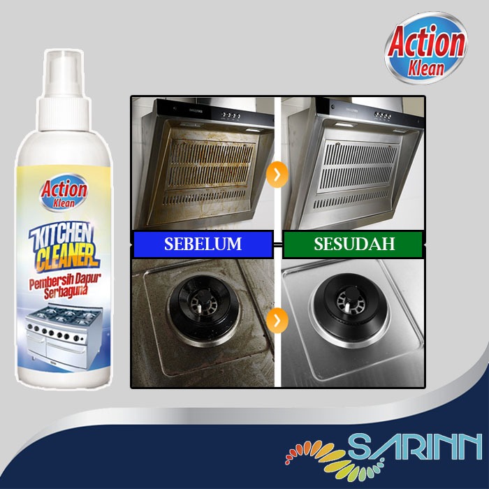 Pembersih dapur kompor oven microwave noda lemak minyak kerak gosong Action Klean Kitchen Cleaner 200ml kemasan spray