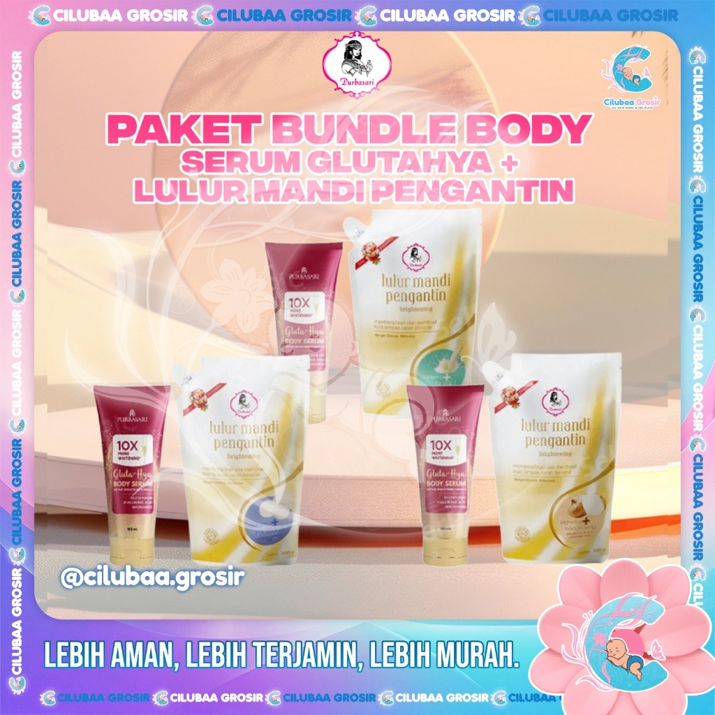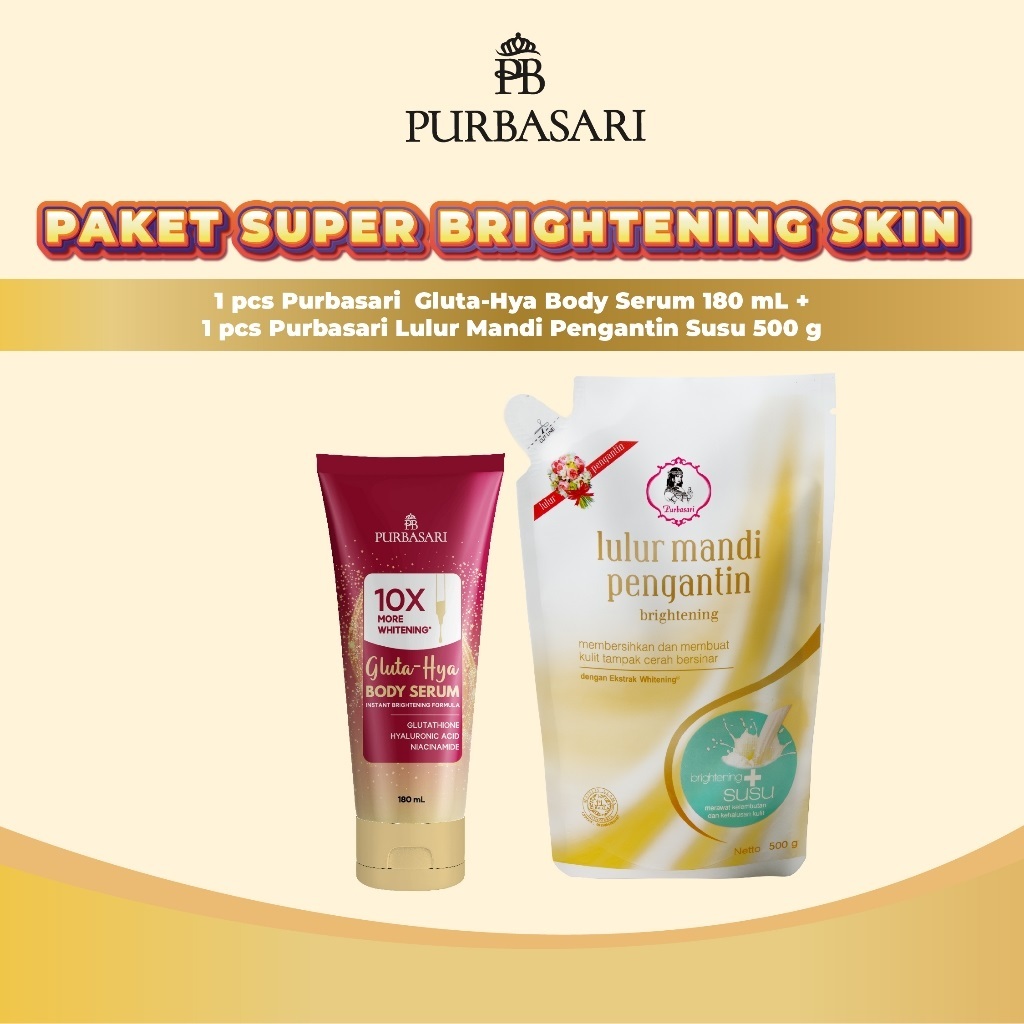 BUNDLE 2PCS PURBASARI Body Serum Glutahya 180mL + Lulur Mandi Pengantin 500gr || Susu || Bengkoang || Mutiara