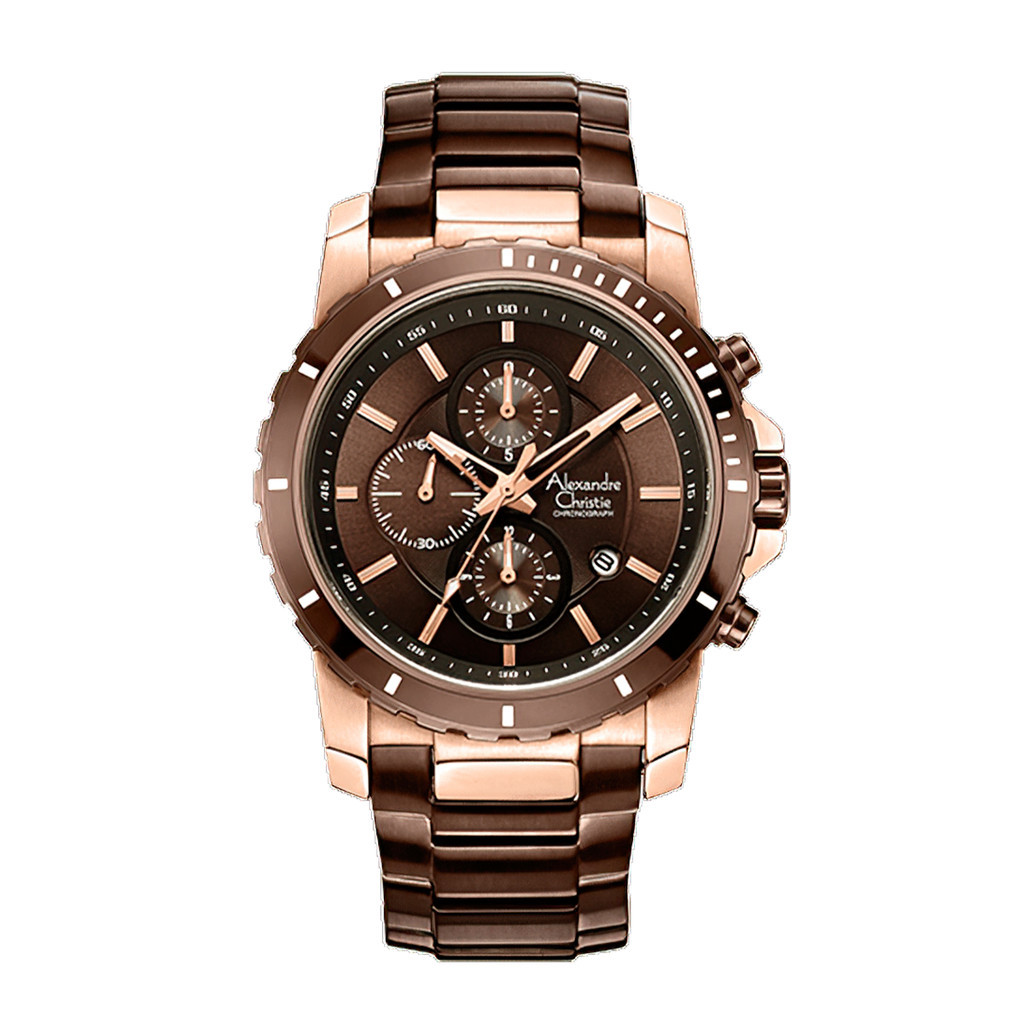 Jam Tangan Pria Alexandre Christie Chronograph AC 6141 MCBROBOA Brown Dial Brown Stainless Steel Strap