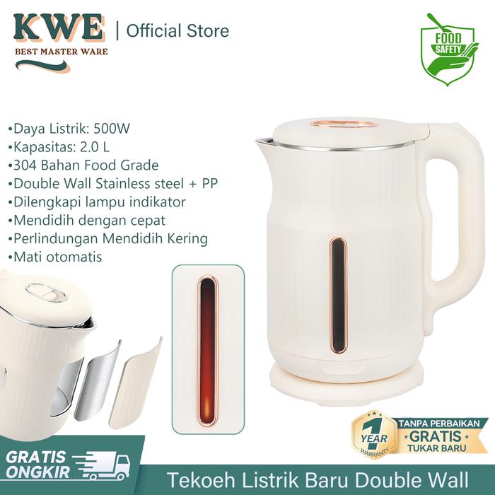 KWE Teko Listrik 2.0L Double Wall Ceret 304 Food Grade Ketel 2025 Pemanas Air Elektrik Electric