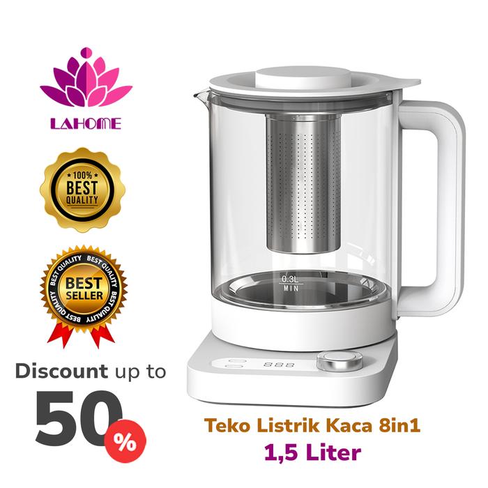 LAHOME Teko Listrik Pemanas Air Multifungsi 8in1 Ketel Kaca Kopi 1.5L Smart Digital Health Kettle