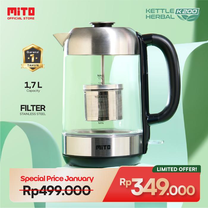 MITO Electric Kettle Herbal K200 1.7L Teko Listrik Gelas Transparan Pemanas Air Transparent Glass
