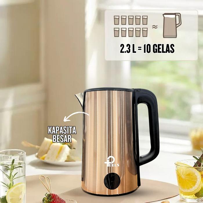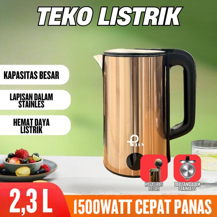 PPLUS Teko Listrik 1500W 2,3L Pemanas Air Listrik Water Heater Kettle ListrikTeko Listrik Stainless
