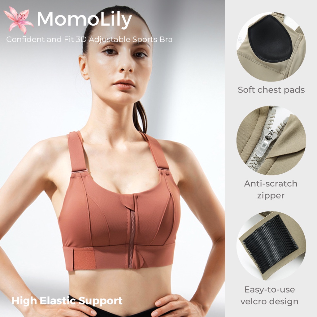 MomoLily Sport Bras Adjustable Waist Band Rust Sport Bra Wanita Premium