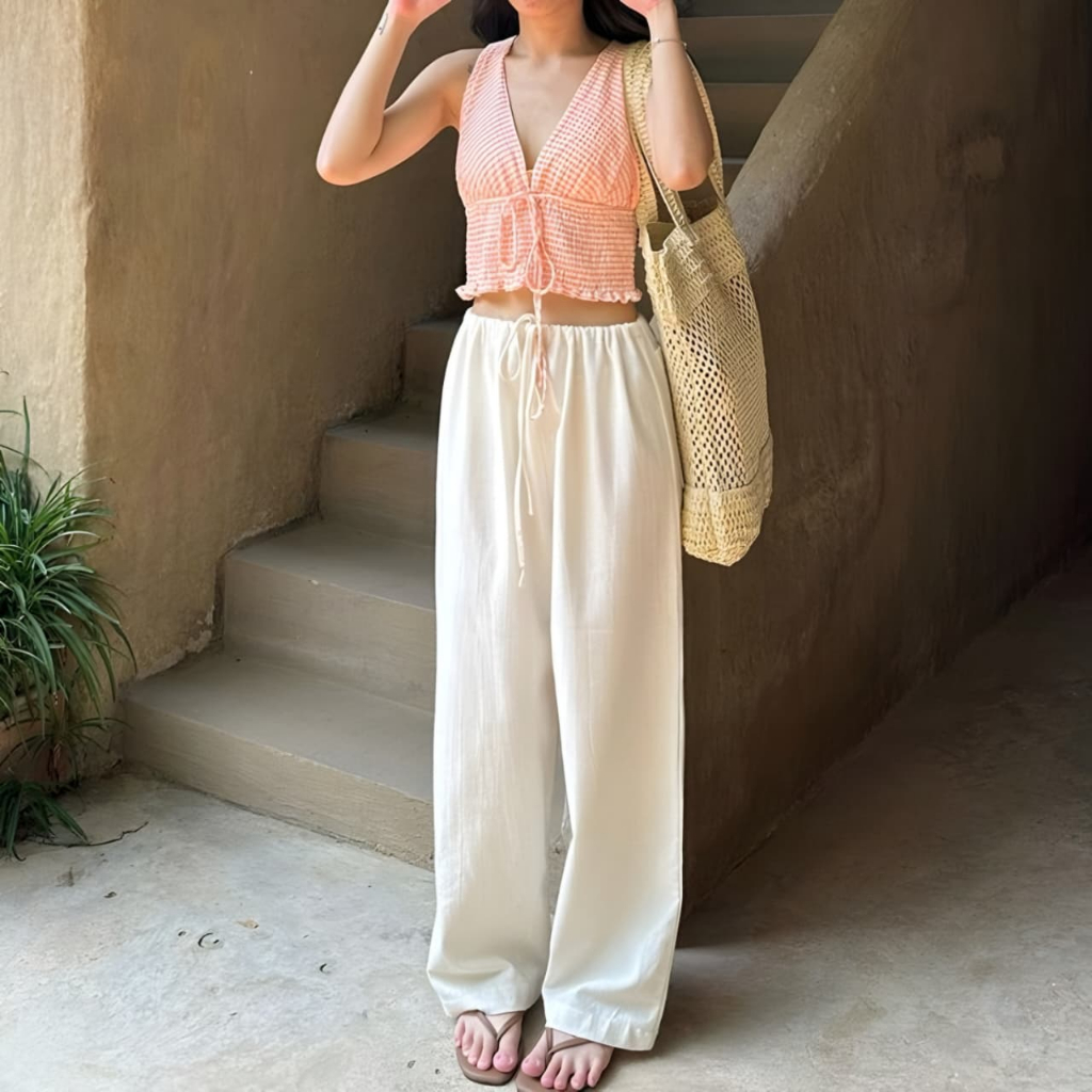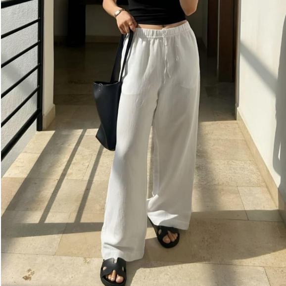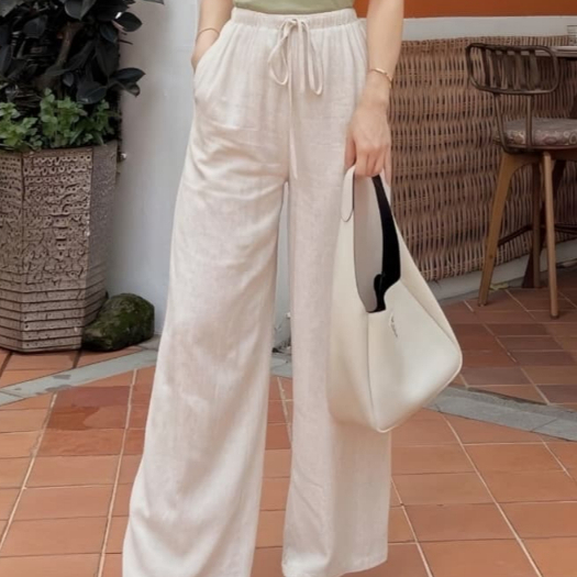 Teesa Linen Pant Celana Wanita Highwest Bahan Celana Pantai Wanita Model Terbaru Desain Nyaman Kulot Panjang Celana Wanita Model Terbaru