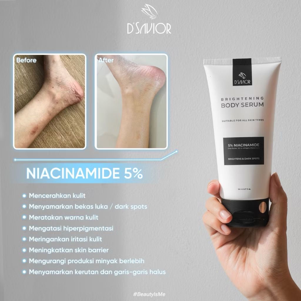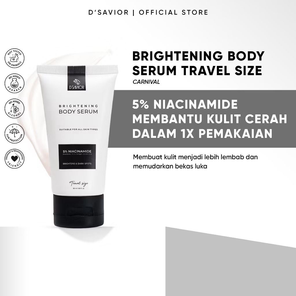 D'SAVIOR Brightening Body Serum Niacinamide 5 PERSEN High Grade 50ml D Savior Dsavior Travel Size Pelembab Pencerah Badan Kuli
