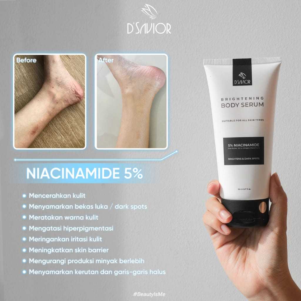 D'SAVIOR Brightening Body Serum Niacinamide 5 PERSEN High Grade 50ml D Savior Dsavior Travel Size Pelembab Pencerah Kulit Bada