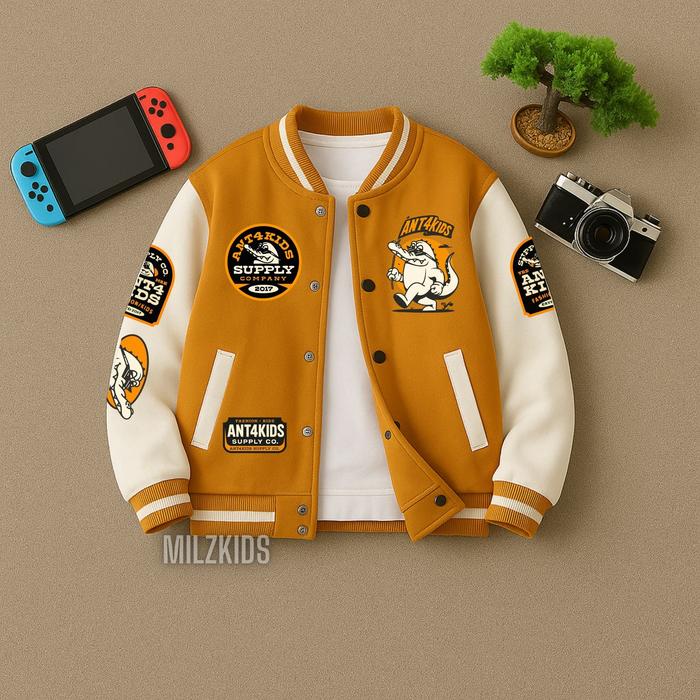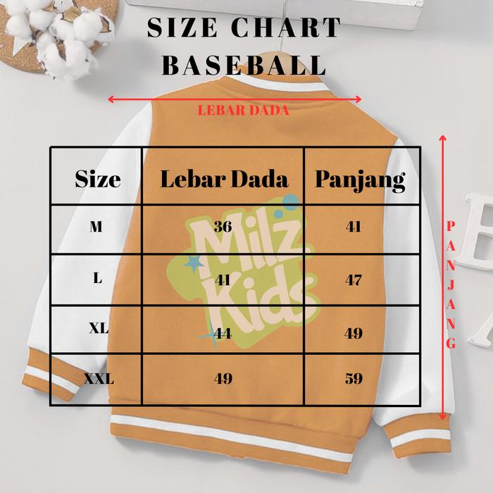 MILZKIDS JAKET VARSITY BASEBALL ANAK UNISEX THE MILZKIDS EDITION USIA 2 - 12 TAHUN - BASEBALL - HITAM, M ( 2 - 3 TAHUN )