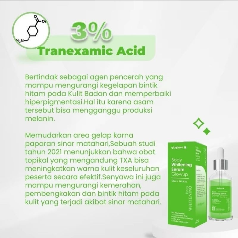 GLUGHAVA Body Serum Body Whitening Glowup 10 PERSENNiacinamide 3 PERSENTranexamic acid