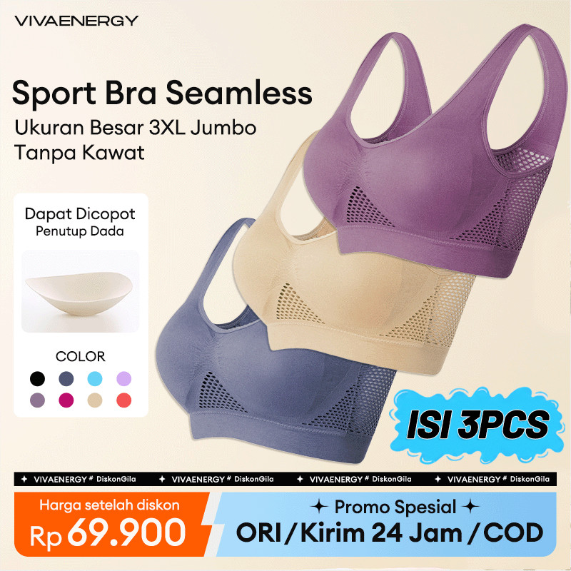 3PCS Sport Bra Ada Busa Jumbo Seamless Push Up Bra Gym Elastis Tanpa Kawat BH S6