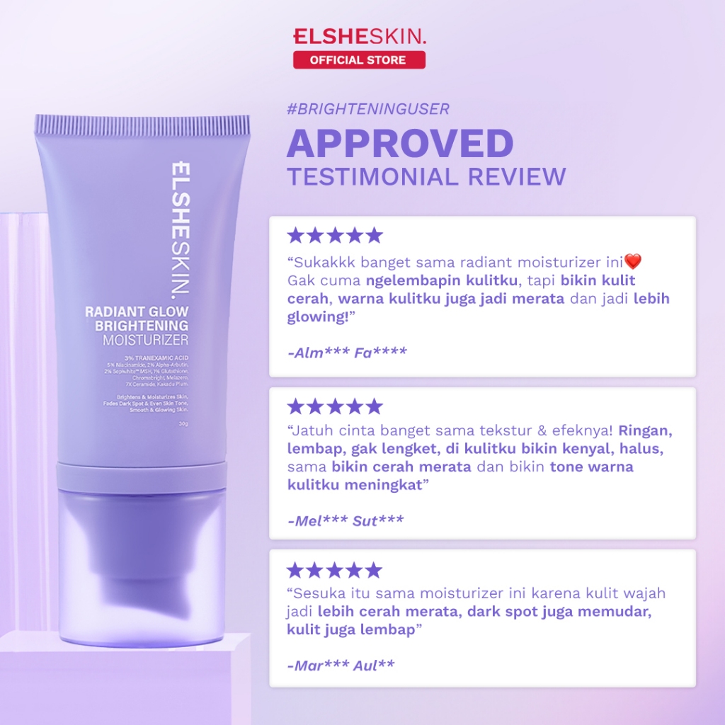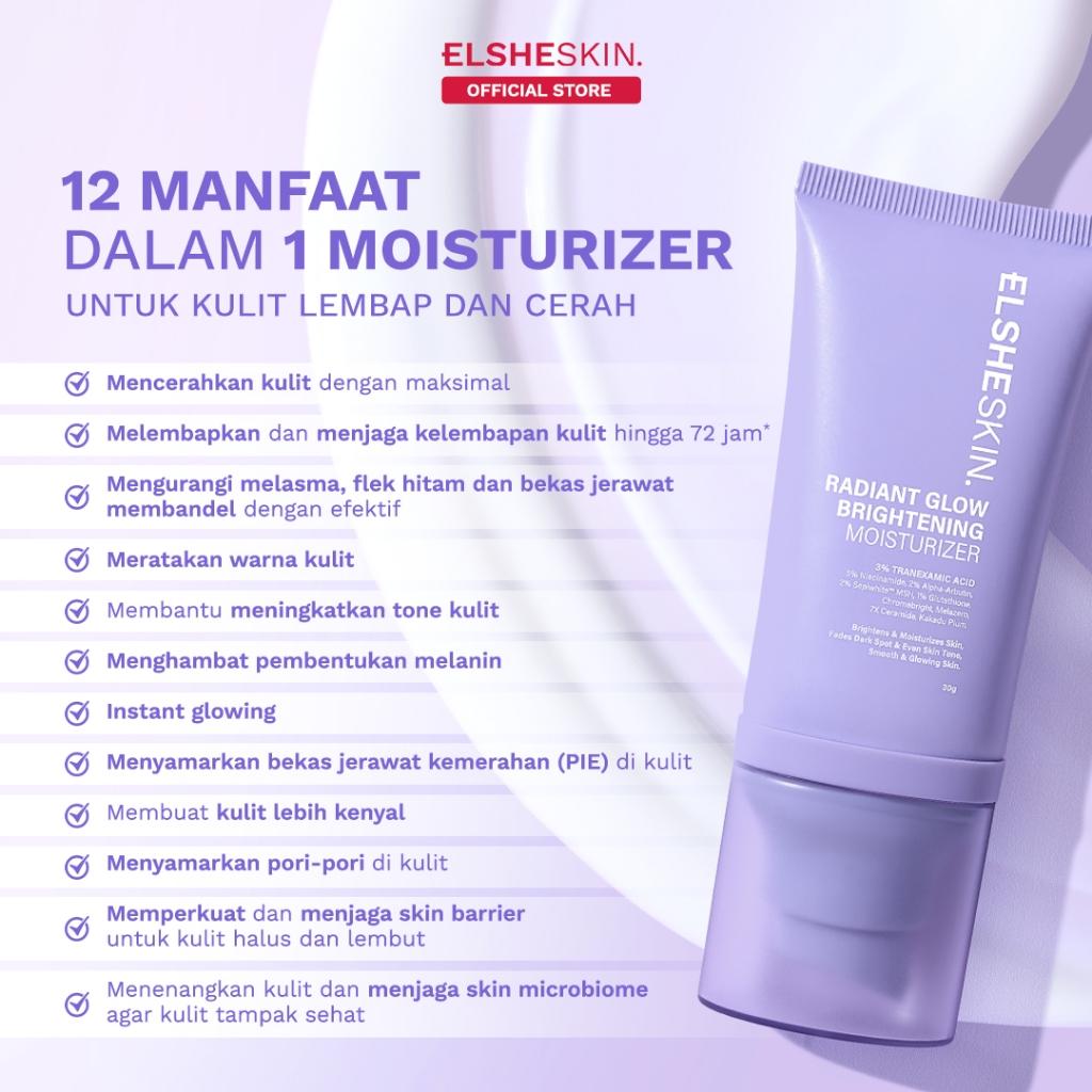 Elsheskin Radiant Glow Moisturizer - Skincare - Brightening Moisturizer untuk Mencerahkan, Melembapkan, Menghidrasi, Menyamarkan Flek Hitam dan Bekas Jerawat, Kulit Glowing