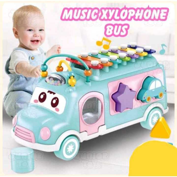 Mainan Bus Xylophone Mobil / Mainan 3in1 Musik/ Sorting Bentuk dan Alur kawat/ Mainan Anak Edukasi