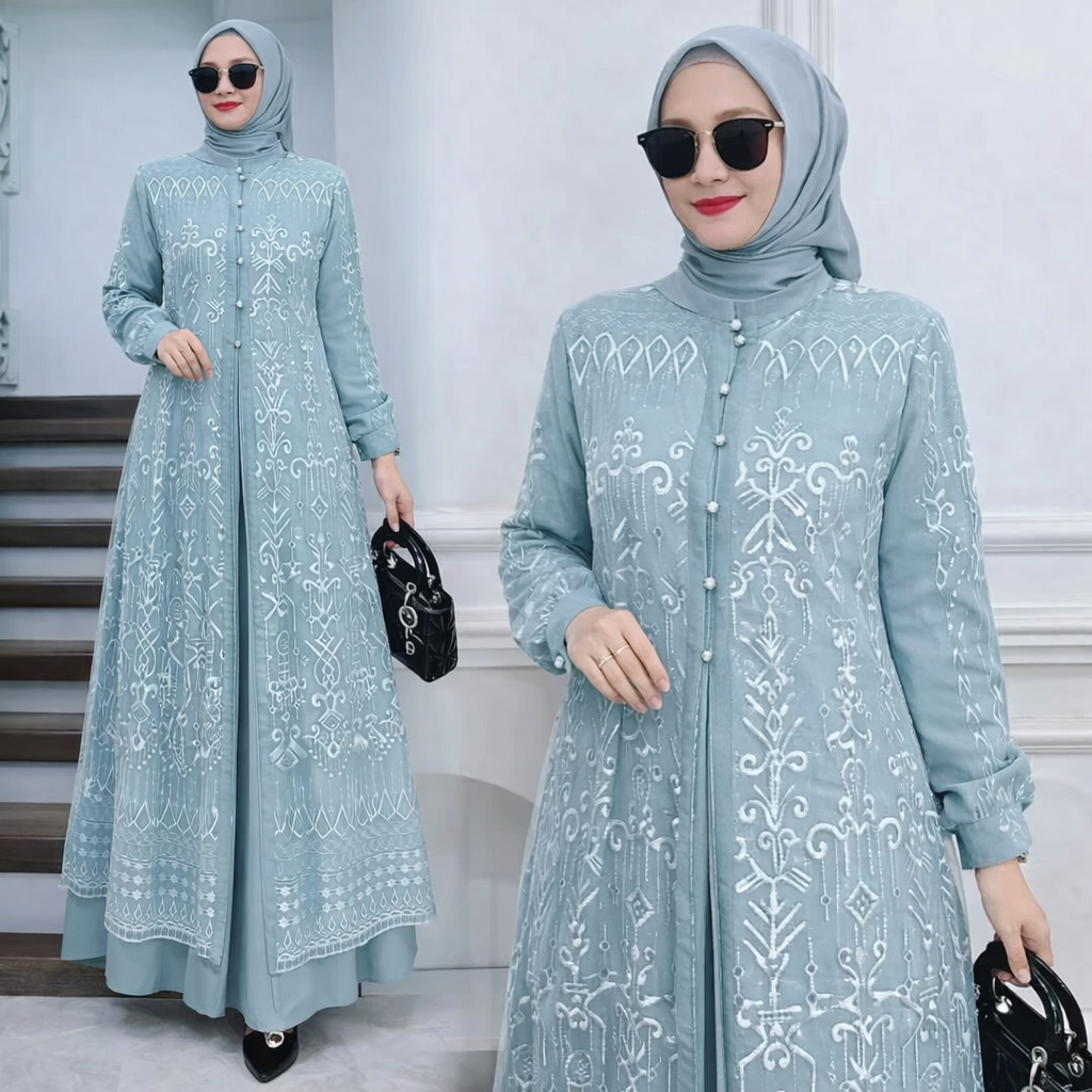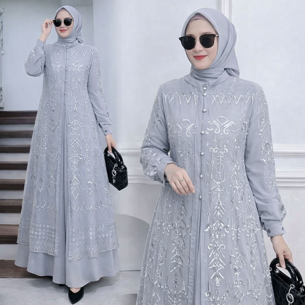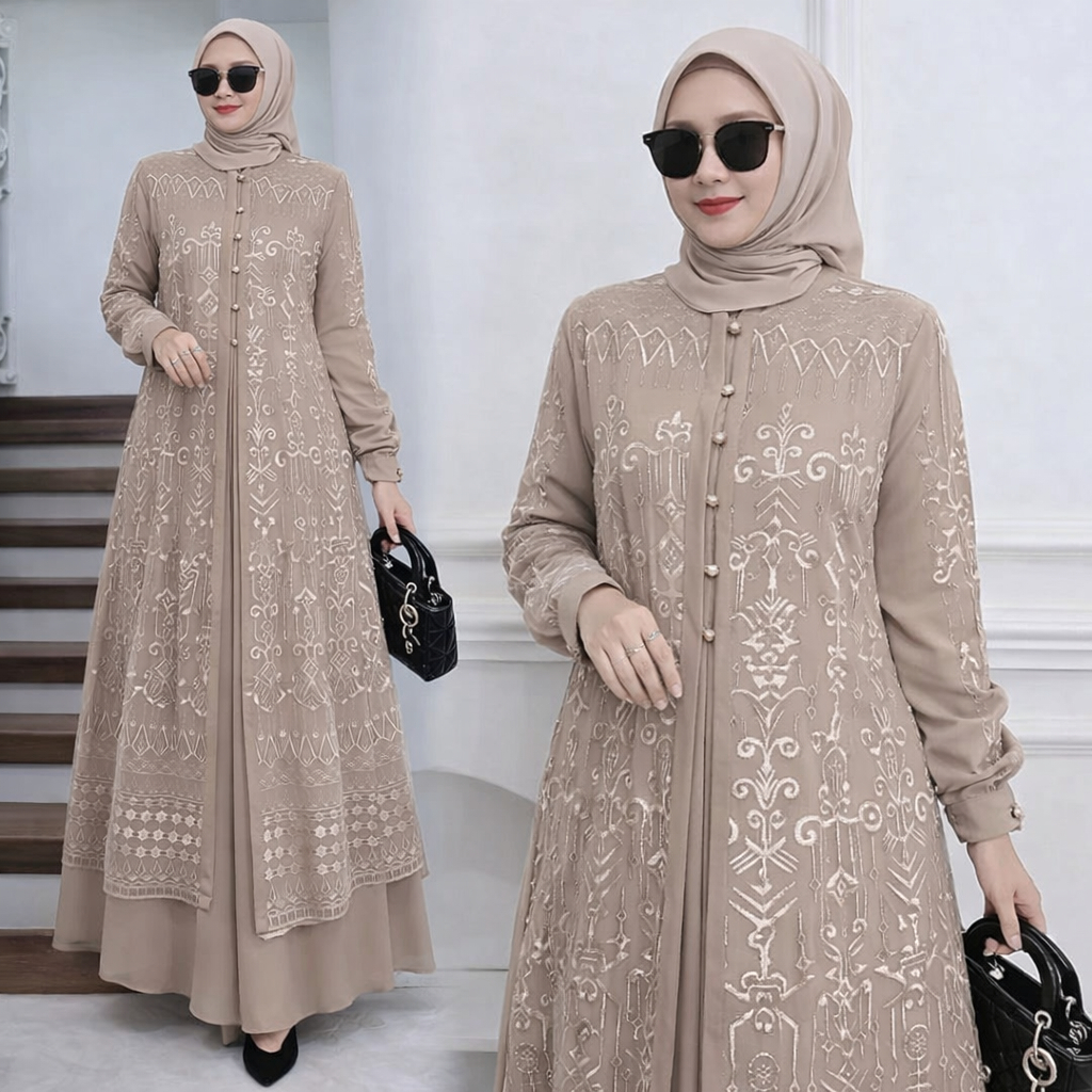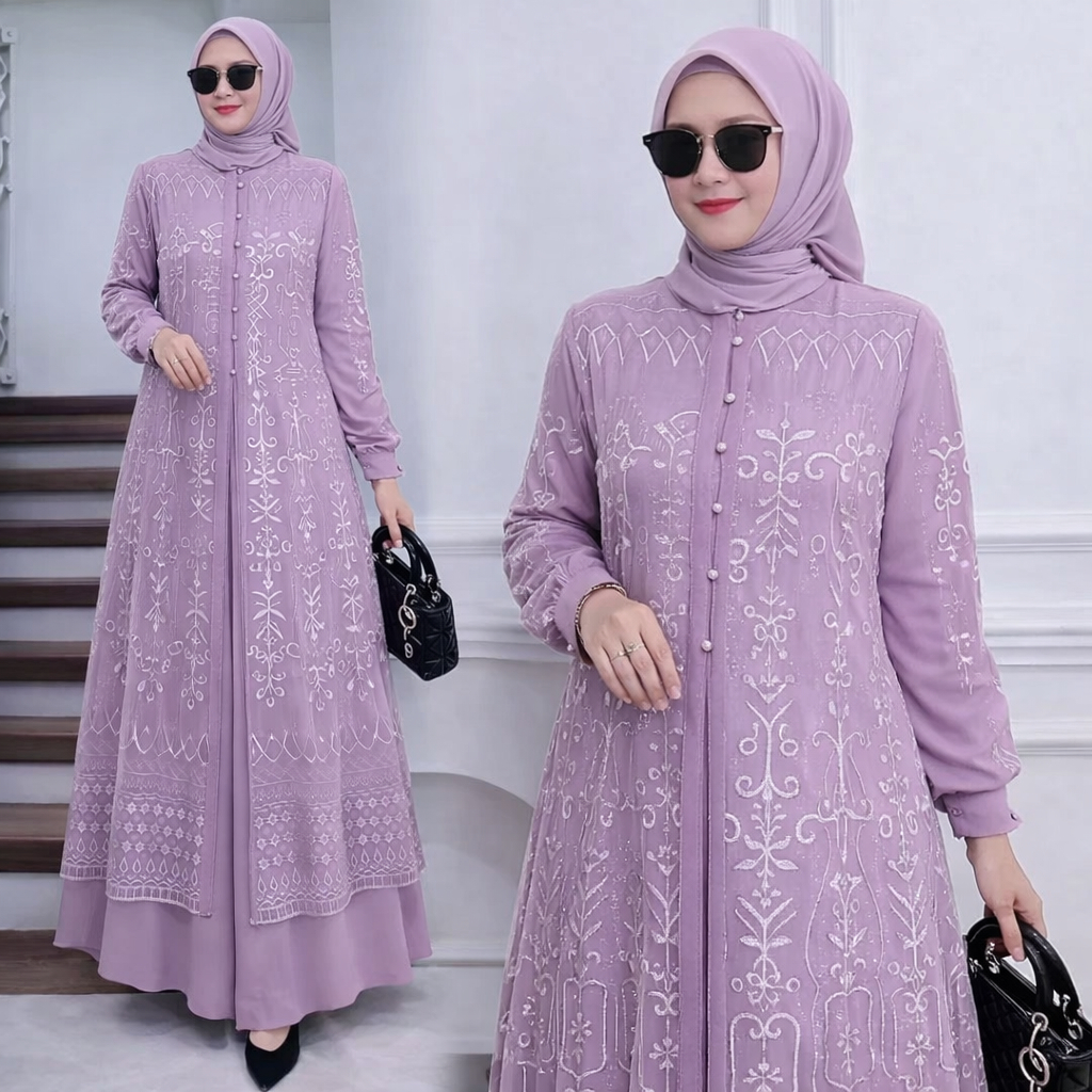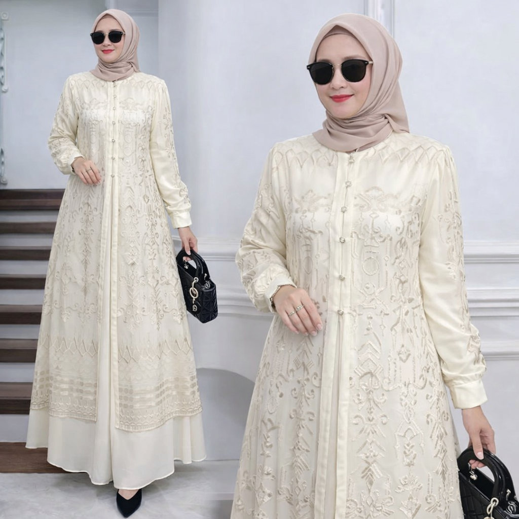Vallina Outfit - Sabrina Maxy Dress Brukat Gamis Muslim Wanita Ceruty Babydoll Kondangan Premium