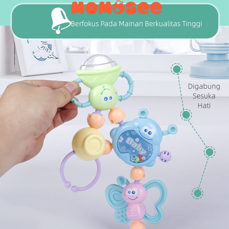 Momosee Baby Teether Rattle Teething Kit Mainan Gigitan Bayi Silikon PP Bayi Mainan Bayi WJ03