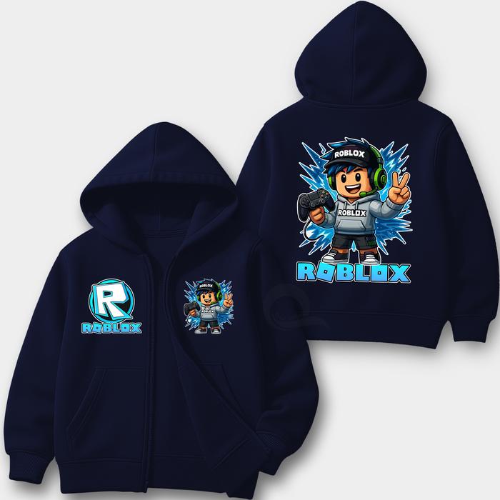 QIAL KIDS JAKET HOODIE ZIPPER ANAK ROBLOX LAKI LAKI PEREMPUAN USIA 3-13 TAHUN JACKET SWEATER UNISEX - DENIM , M (3-4 TAHUN)