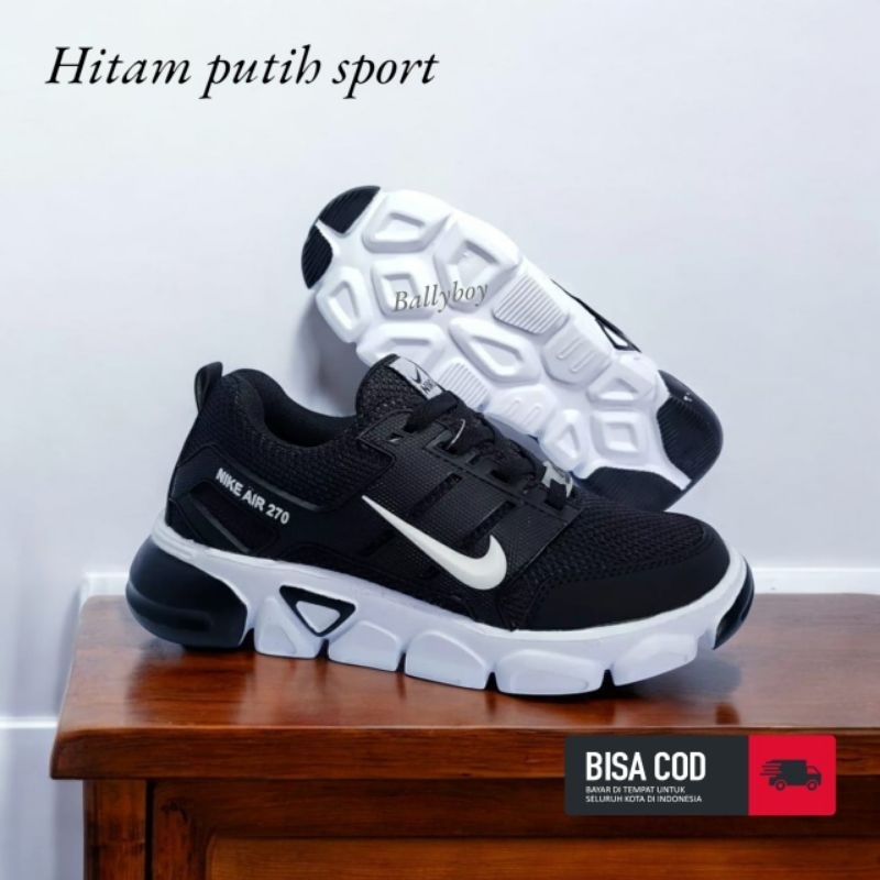 Sepatu Sekolah HItam Putih Pria Wanita Sepatu HItam Polos Full Blak 36/44