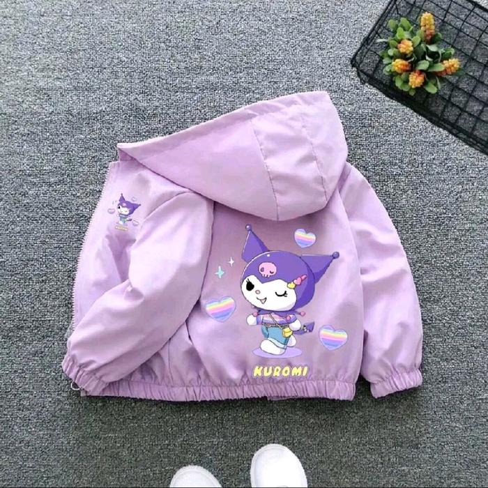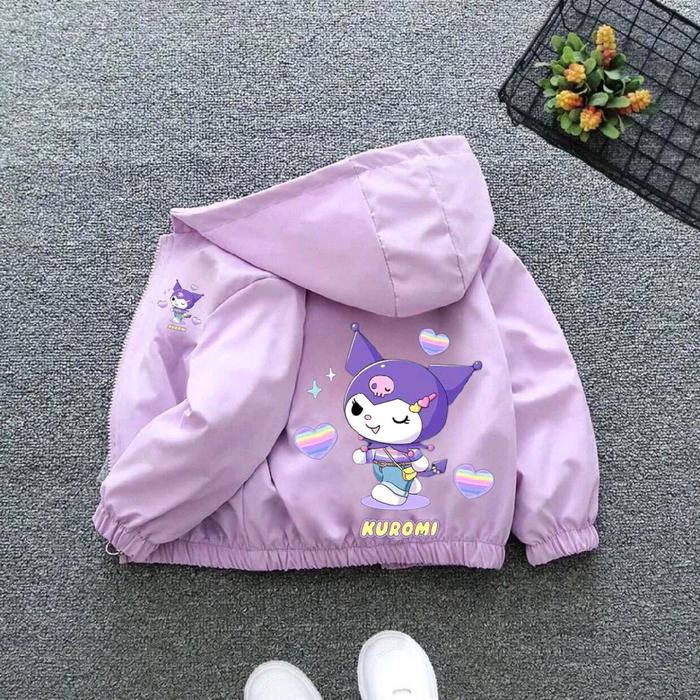 JAKET HOODIE BERGAMBAR KUROMI/ JAKET ANAK WATERPOOF KIDS FASHION - PINK KUROMI, S 1-2 THN