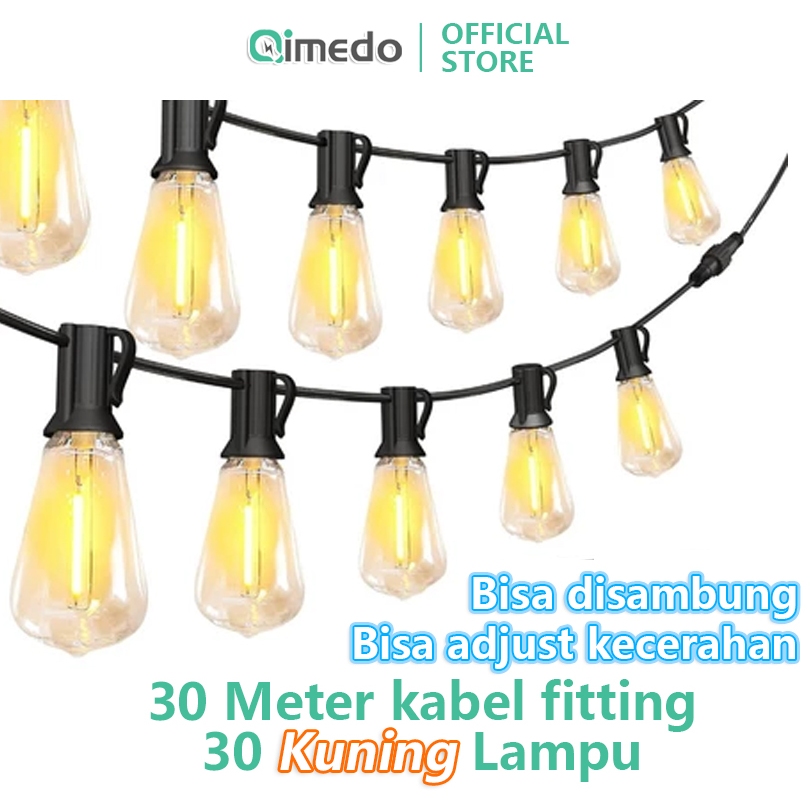QIMEDO 30 Meter 30 Kuning Lampu LED Adjust Kecerahan Outdoor Fitting Kafe Dekorasi Lampu Hias