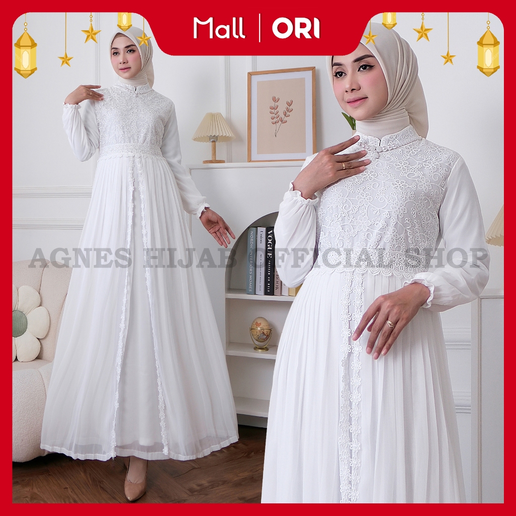 Agnes Hijab - Khairany Dress Gamis Putih Lebaran 2026 Terbaru Plisket Baju Muslim Dewasa Elegan Gaun Pesta Kondangan Haji Umroh 821
