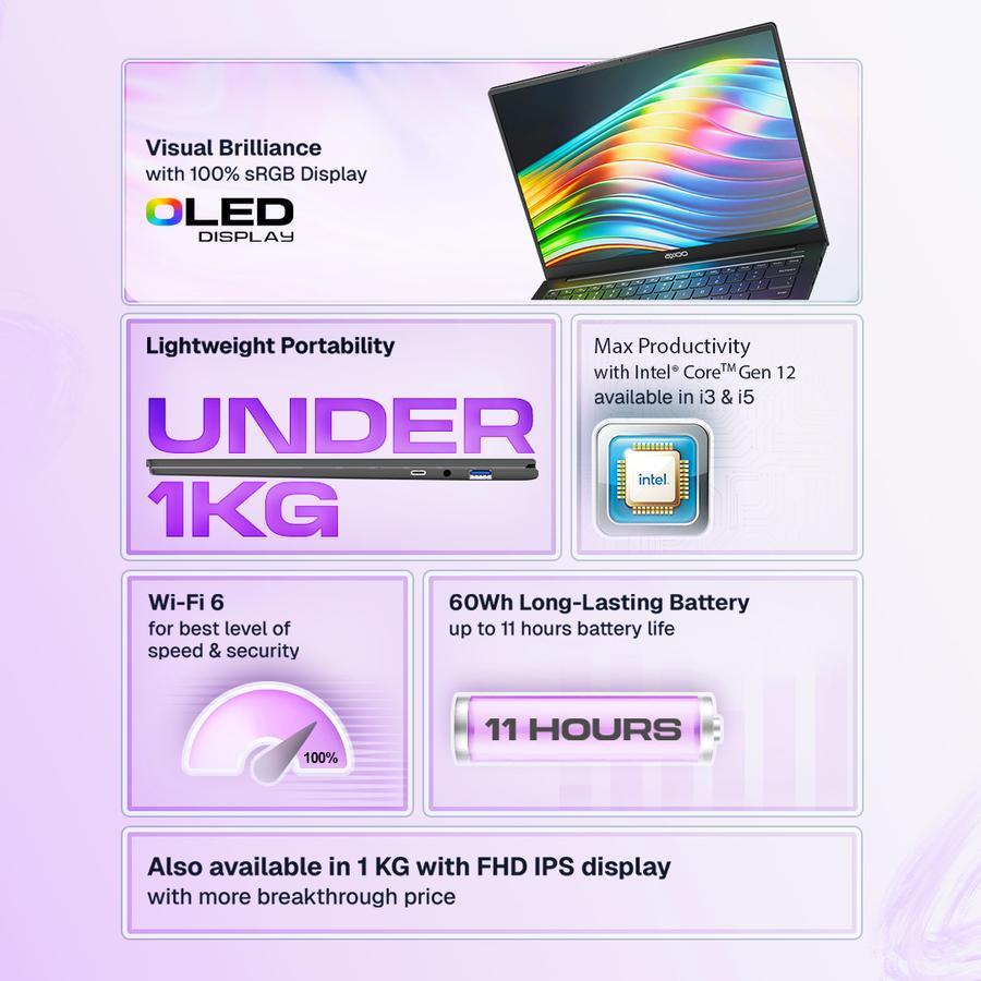 Laptop Axioo Hype R5 Oled I5 1235 RAM 24GB SSD 1TB Windows 11 + Office Home 2024 14.0 Inch FHD Oled