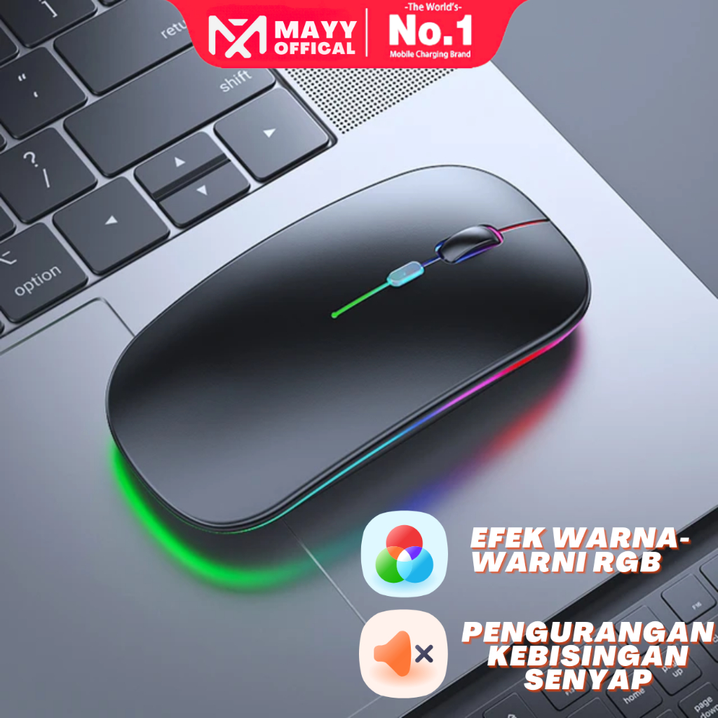 Mayy official id Mouse wireless+bluetooth mouse gaming silent click rechargeable RGB slim 2.4Ghz 1600DPI LED Backlit Isi