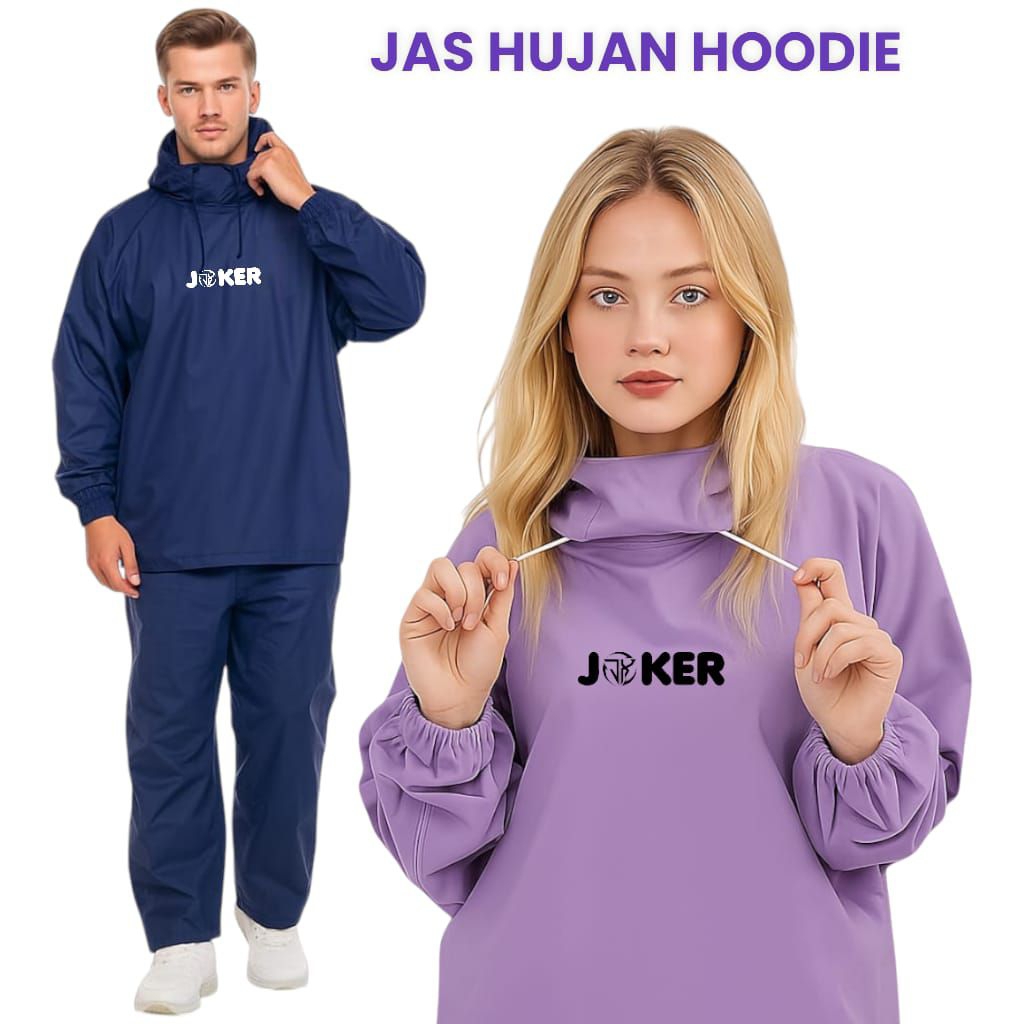 Jas Hujan Terbaru Model Hoodie Untuk Pria Wanita Dewasa Bahan PVC Tebal by Joker