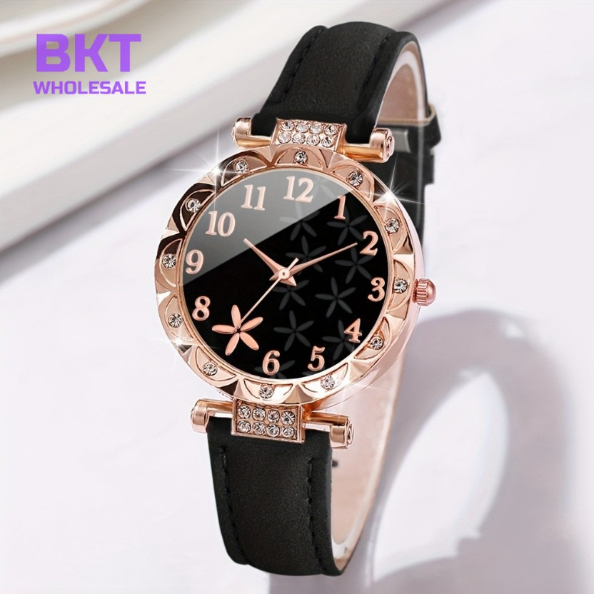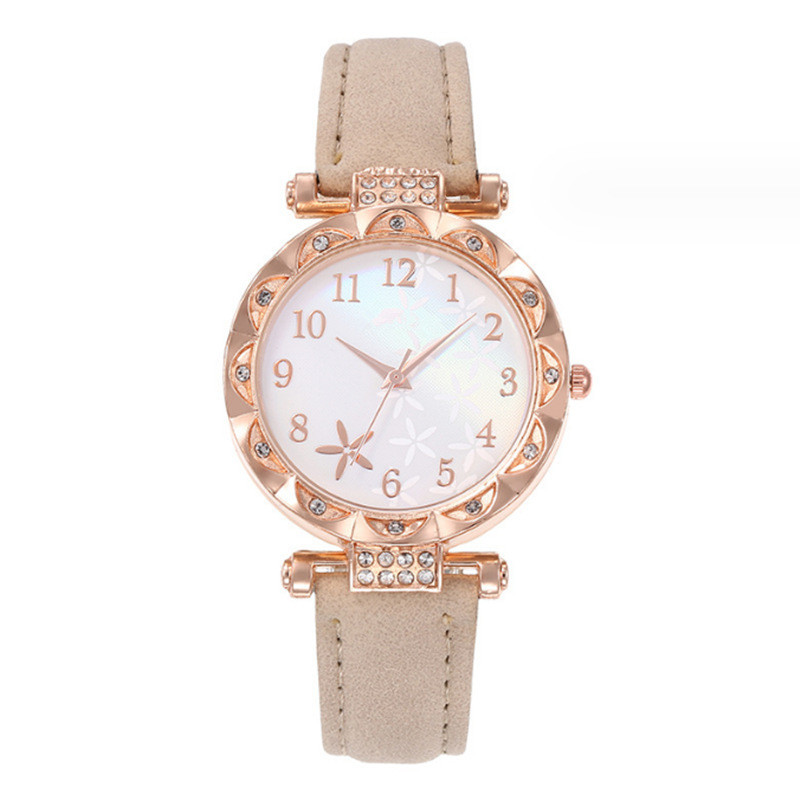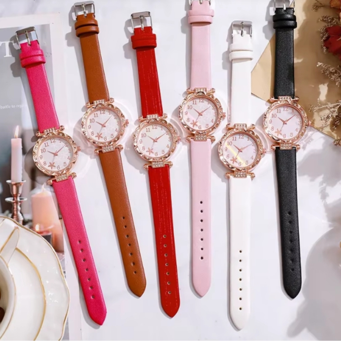 Jam Tangan Kuarsa Wanita Mode Pola Bintang Laut Berlian Dial Jam Tangan Kulit Tali Santai
