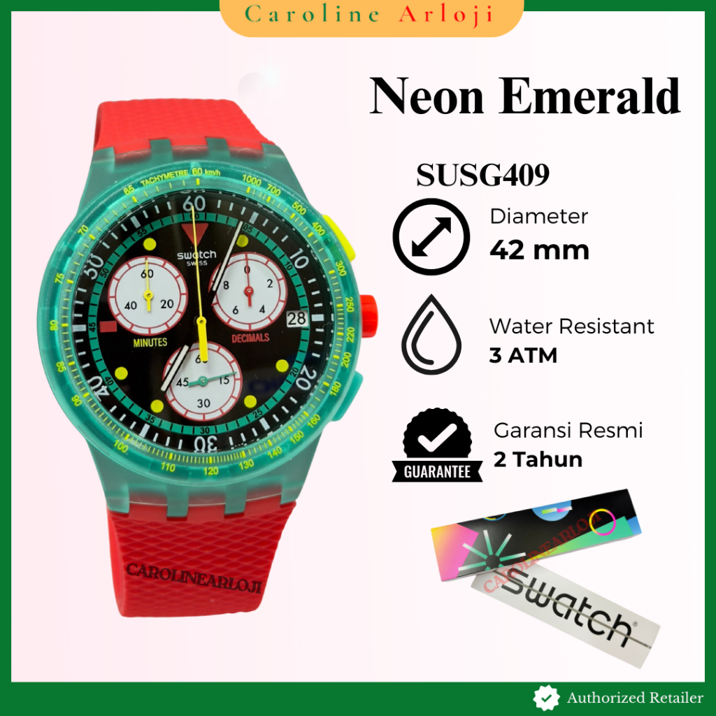 Jam Tangan Pria Swatch Neon Emerald SUSG409 Original Garansi Resmi 2 Tahun