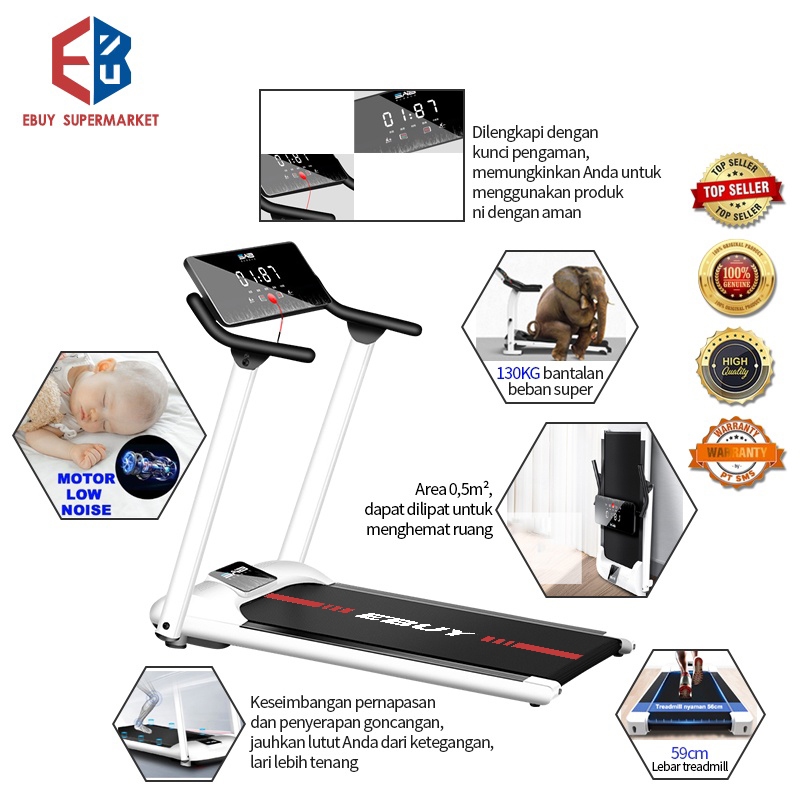 EBUY Treadmill Elektrik Multifungsi/Treadmill Portable/Heavy-Duty Treadmill/Walking Pad/Running Pad