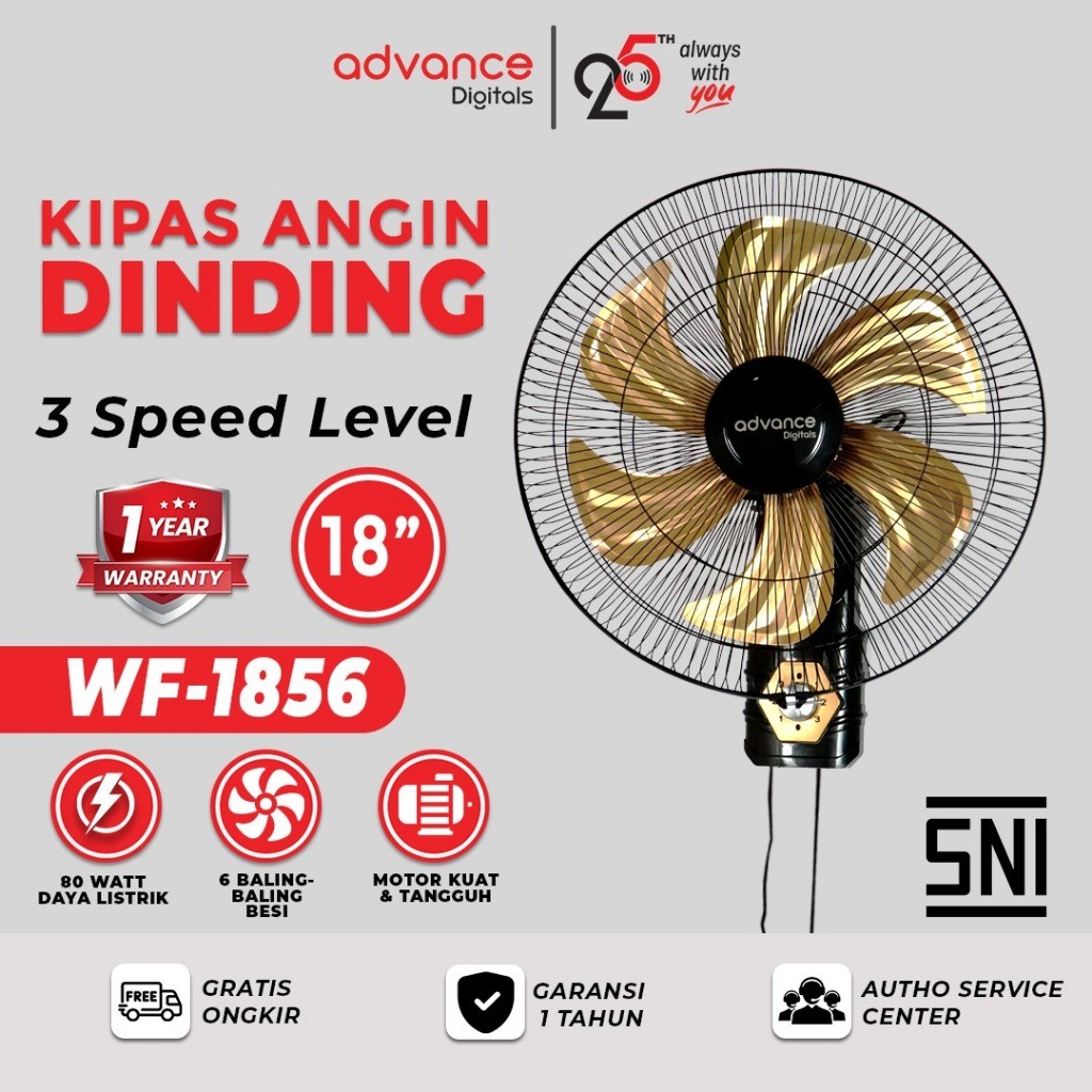 Advance 18 Inci Kipas Angin Dinding WF-1856 Baling 6 Stainless Kipas Angin Tornado Fan Swing