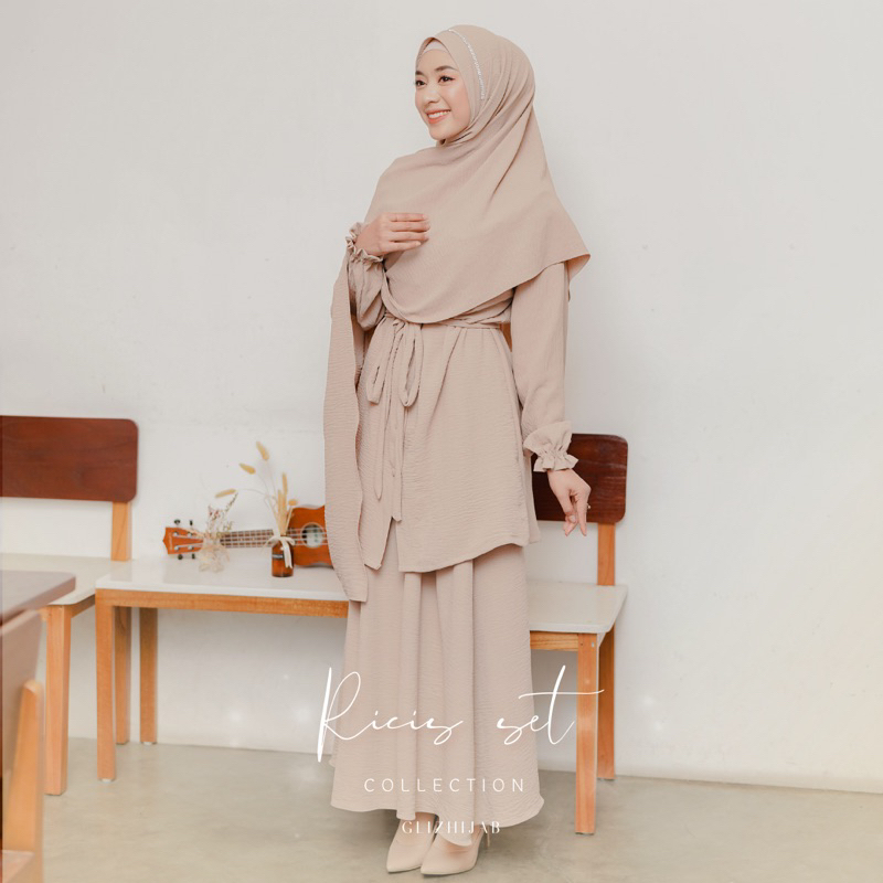 GlizHijab - Ricis One Set Tunik Rok Muslim Jumbo Terbaru Tunik Busui Bahan Rayon Crinkle size XS S M L XL XXL