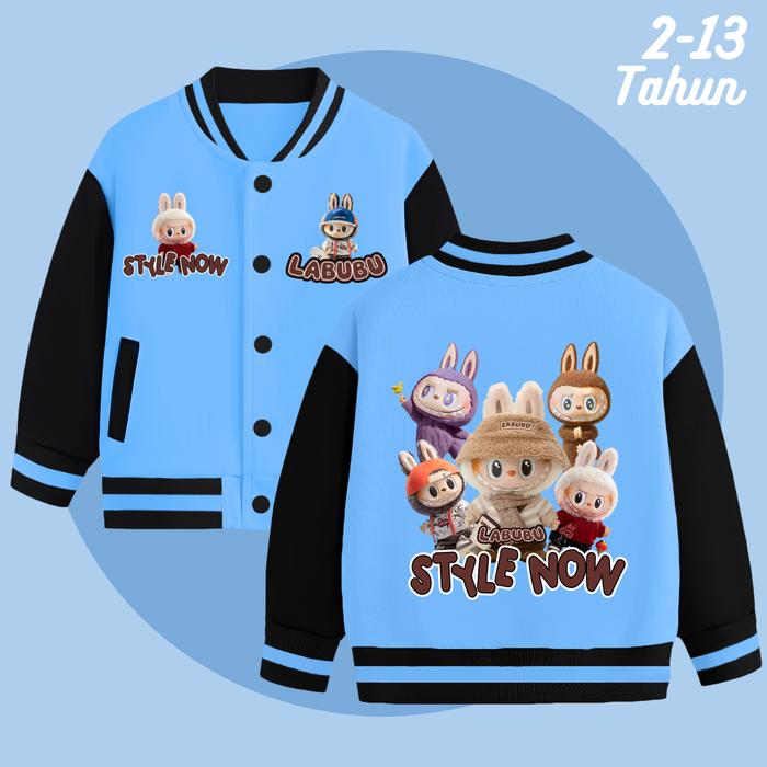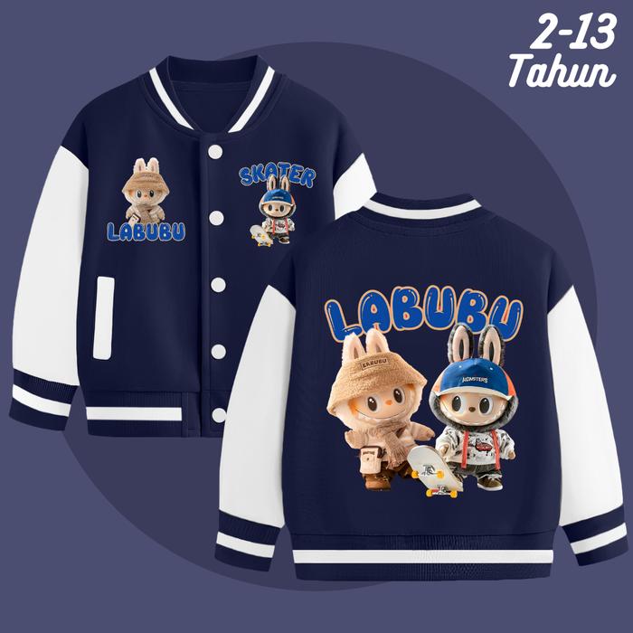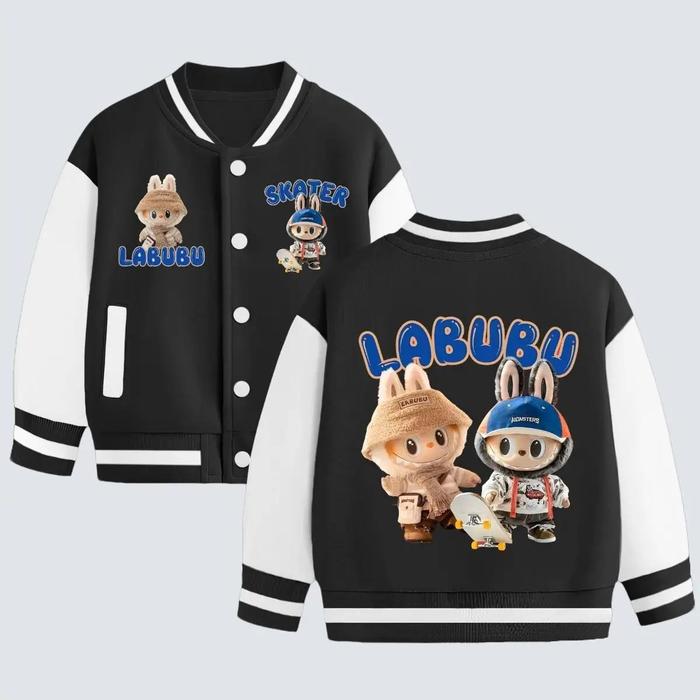 JAKET LABUBU ANAK LAKI LAKI PEREMPUAN MODEL BASEBALL USIA 2-13 TAHUN UNISEX LAKI-LAKI COWOK BAYI - FRIEND HITAM, M (3-4 TAHUN)