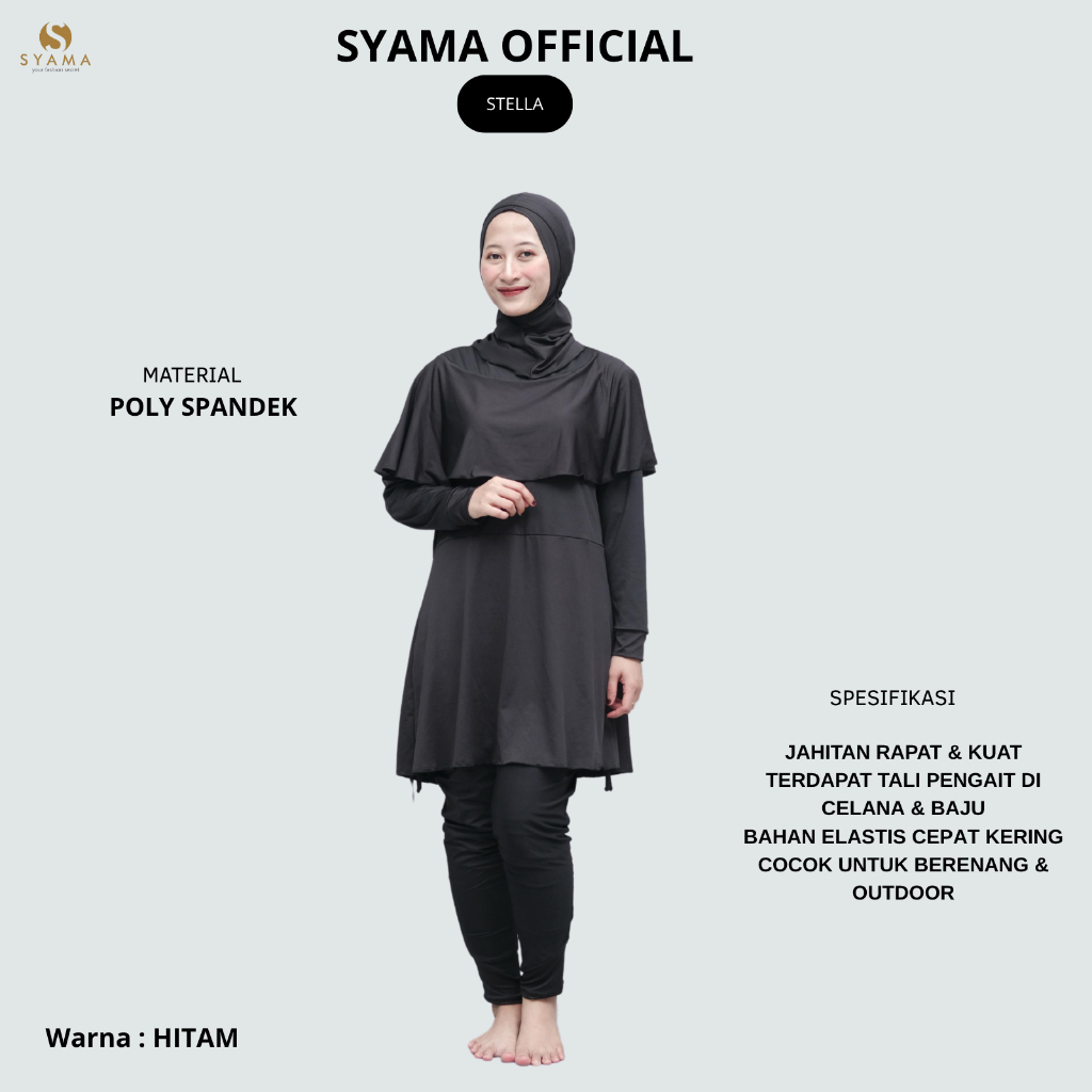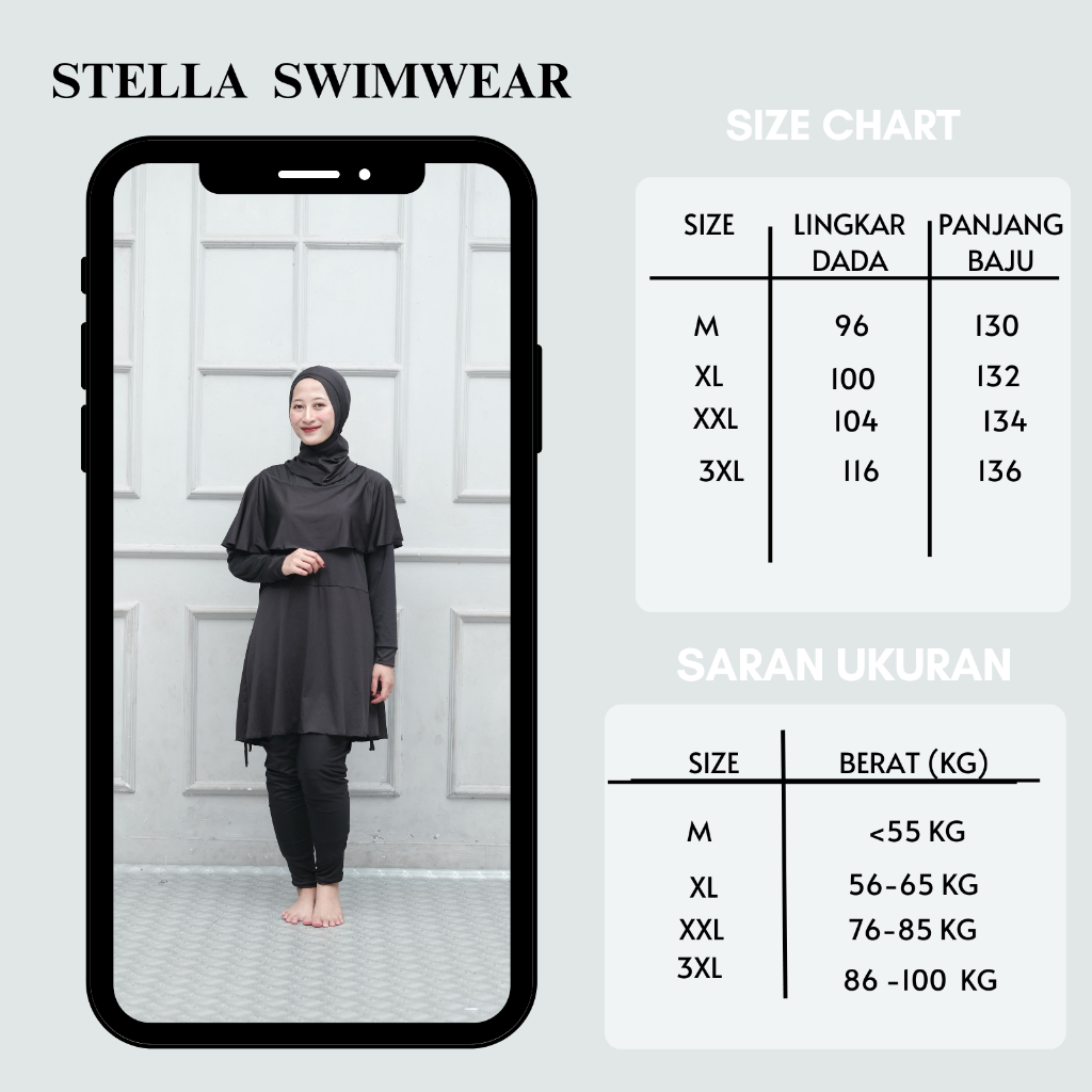 BAJU RENANG MUSLIMAH STELLA SATU SET KERUDUNG - BAHAN CEPAT KERING