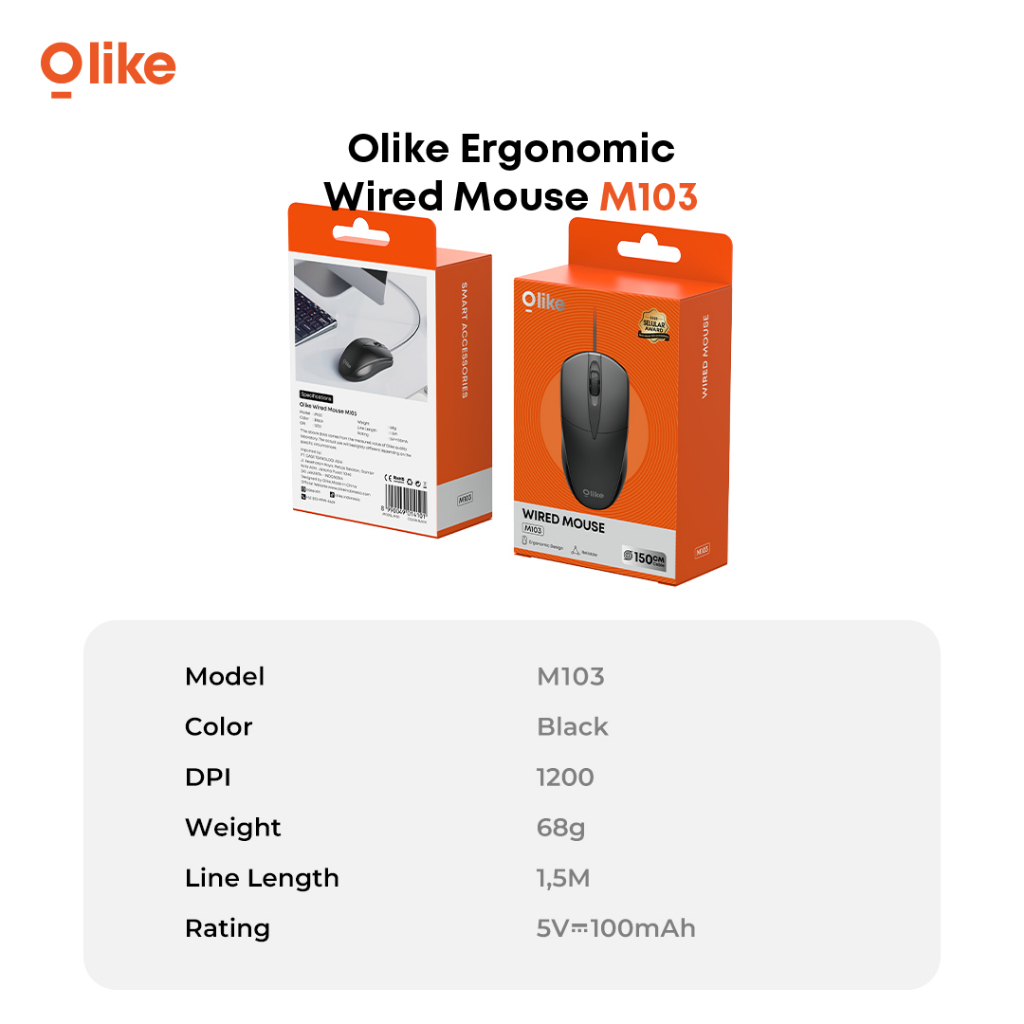 [NEW PRODUCT] OLIKE Wired Mouse M103 Ergonomic 1200 DPI | Mouse USB Kabel 1.5M Flow Control