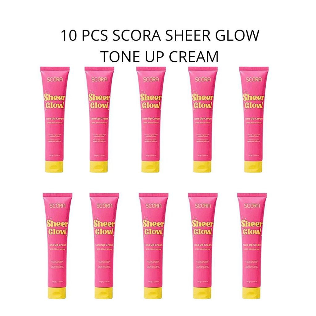 Paket isi 5 dan 10 Pcs Scora Sheer Glow Tone up Cream kemasan 30 gram with Niacinamide Mencerahkan Wajah