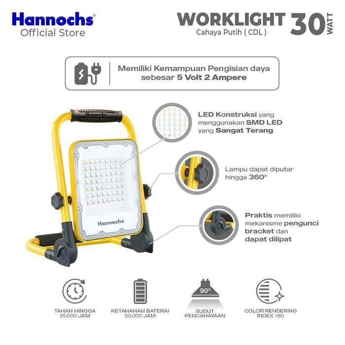 HANNOCHS LAMPU SOROT LED WORKLIGHT 30W CAHAYA PUTIH - LAMPU EMERGENCY
