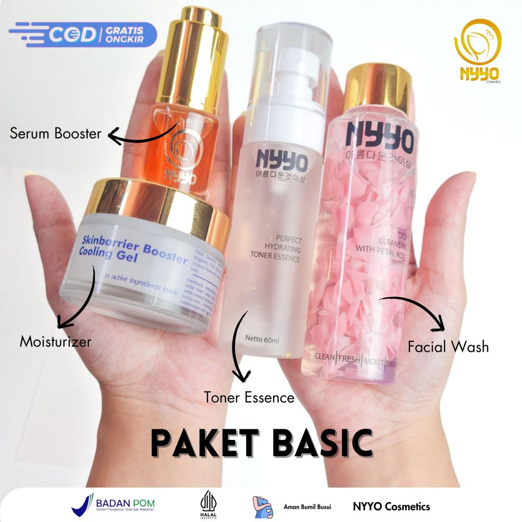 NYYO Paket Basic (4 Pcs) – (Facial wash 110 ml, Toner 60 ml, Serum 12 ml, & Moist 50 gr)