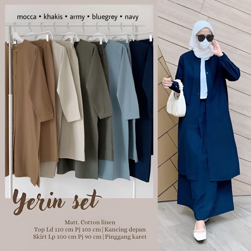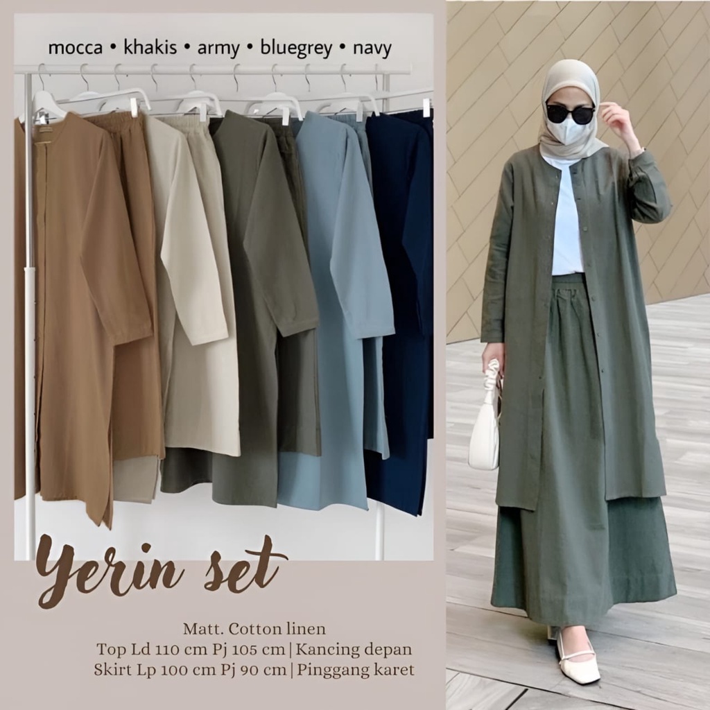 Vallina Outfit - Yerin One Set Linen Rami Setelan Wanita Remaja Muslim OOTD Kondangan Premium