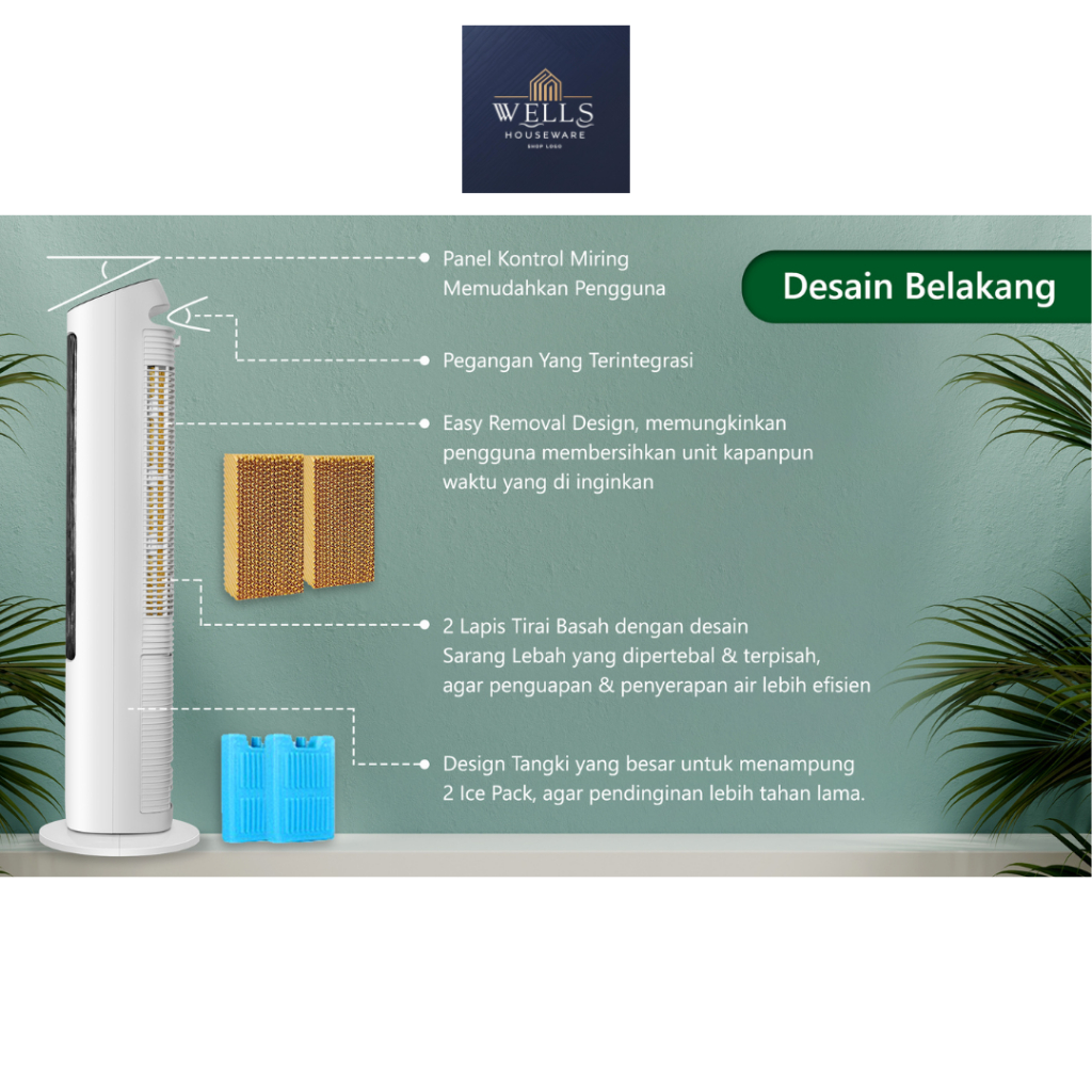 Wells Houseware - GREE Tower Fan Air Cooler with Generator Anion - GTA-ACOOL4 - Humidifier - Tangki 4L